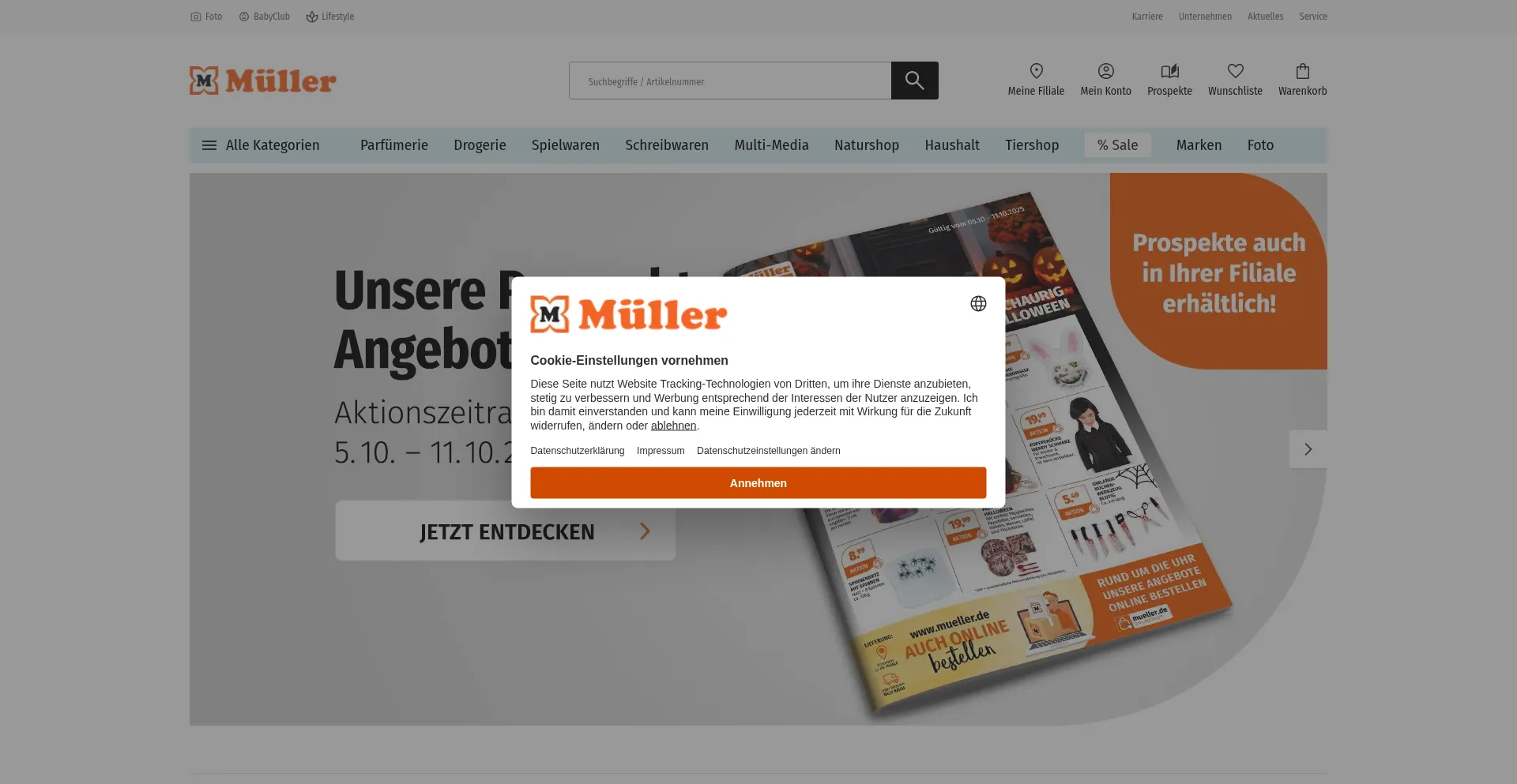 The website implements cookie consent mechanisms in compliance with privacy regulations such as GDPR or CCPA. This demonstrates that mueller.de adheres to data protection standards and provides users with control over personal data collection practices.