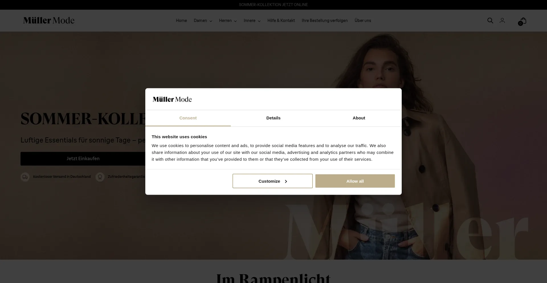 The website implements cookie consent mechanisms in compliance with privacy regulations such as GDPR or CCPA. This demonstrates that mullermode.de adheres to data protection standards and provides users with control over personal data collection practices.