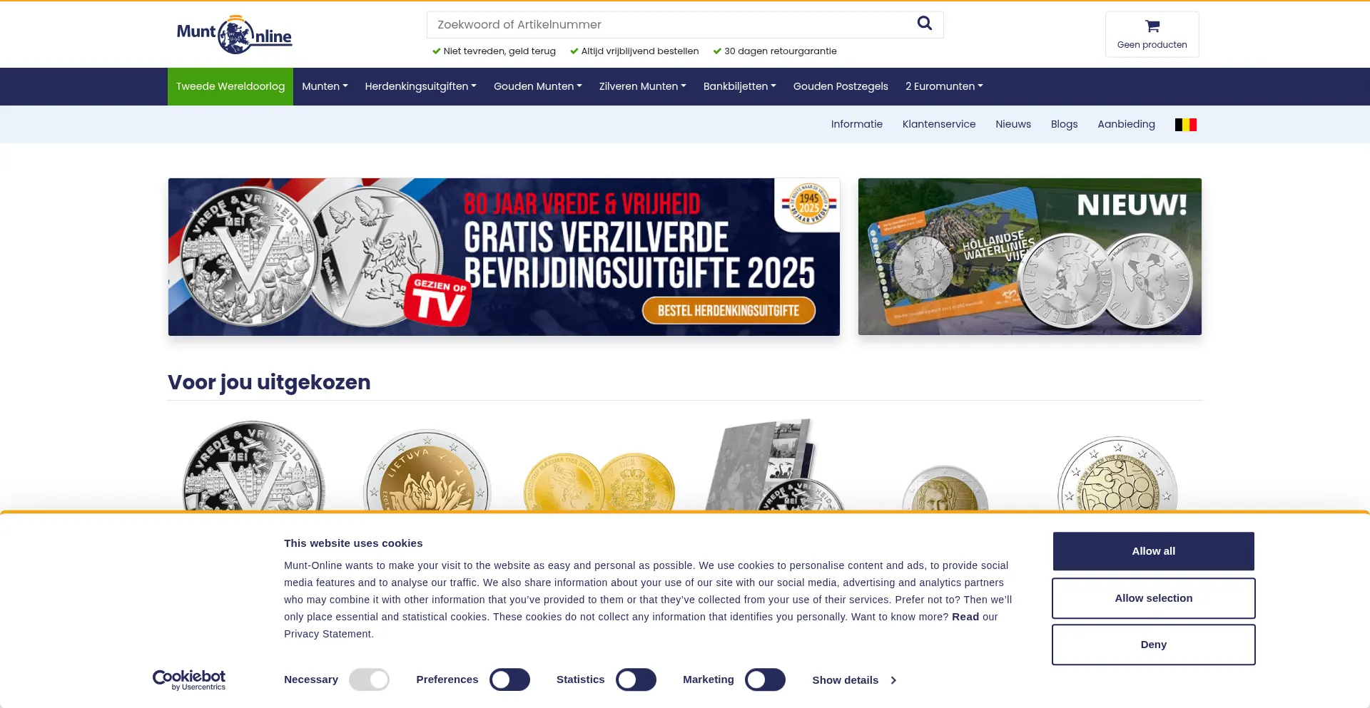 ✓ Munt-Online slaat Officiële Herdenkingsuitgiften ✓ Munten Webshop ✓ Nederlandse Munten ✓ Bankbiljetten ✓ Postzegels ✓ Verzamelplezier ✓ Niet goed, geld terug
