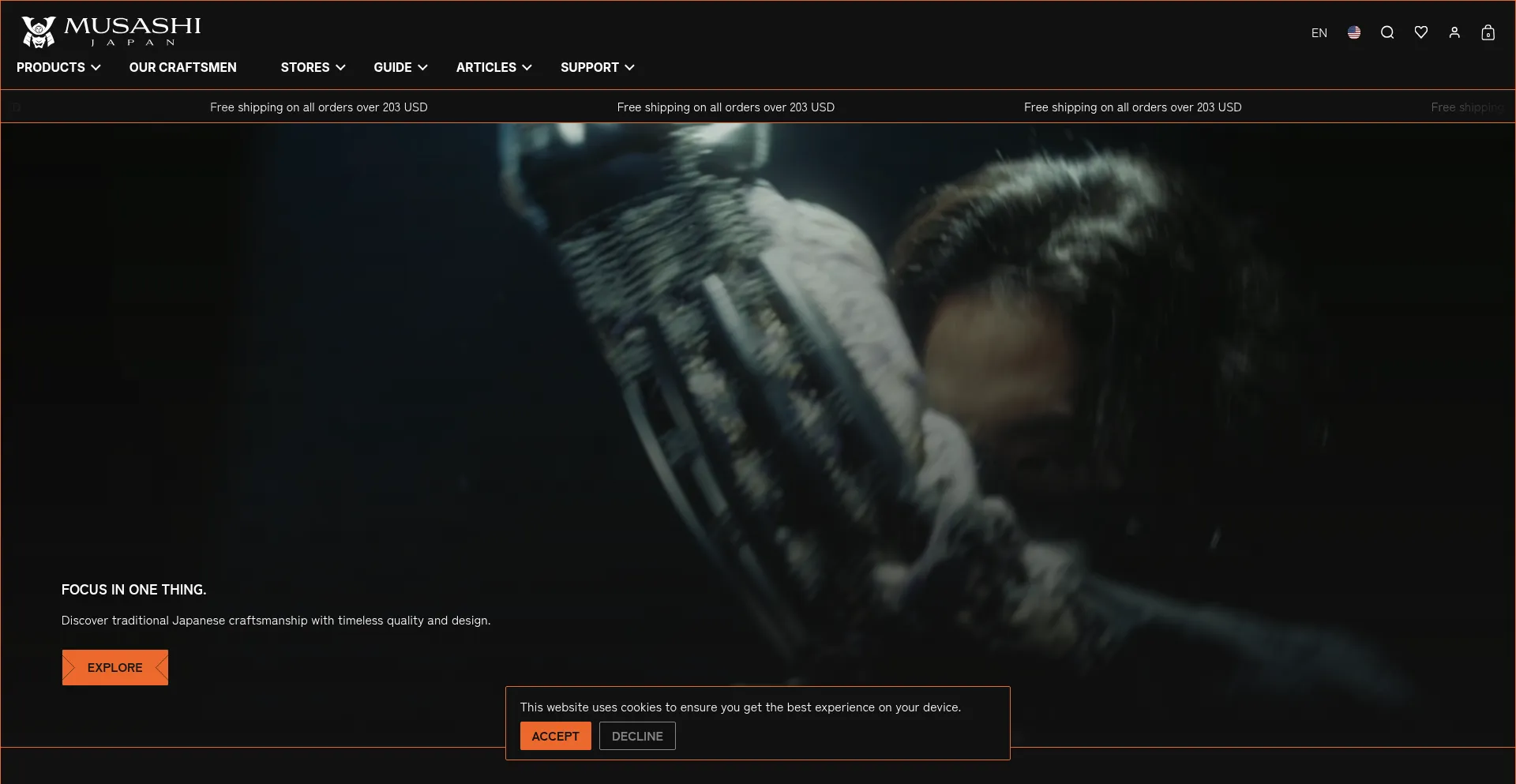 Our analyzer determines that website musashihamono.com is using Shopify CMS. Shopify is a popular e-commerce platform, powering around 4.4% of websites globally.