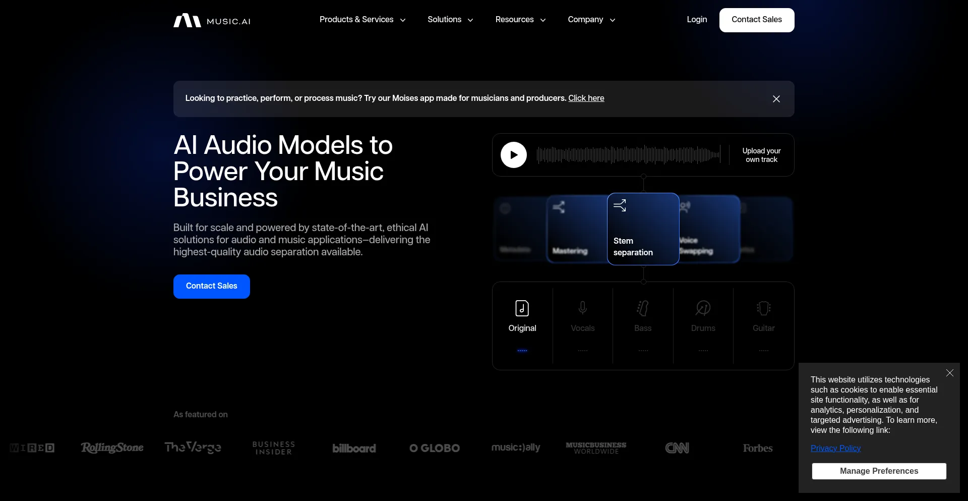 State-of-the-art ethical AI solutions for audio and music applications. The highest quality audio separation available.