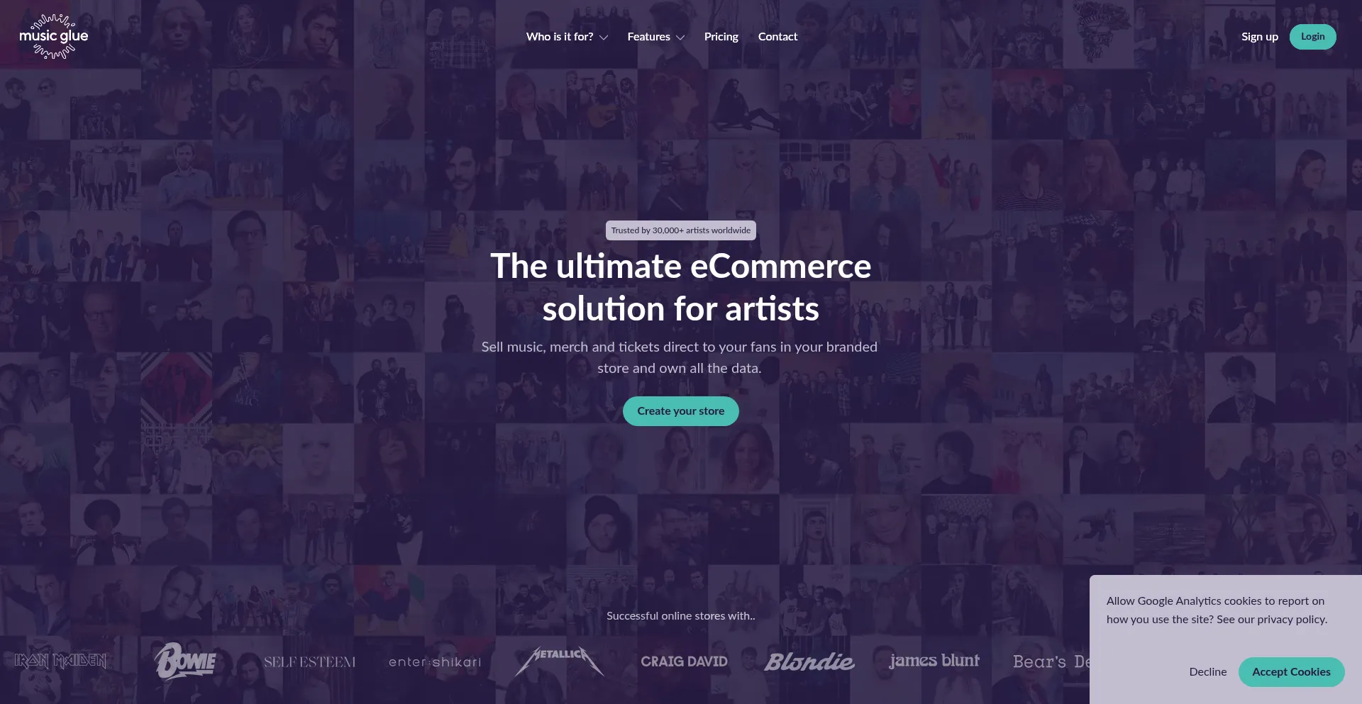 The musicglue.com website uses Google Tag Manager to add and update tracking tags on its website.