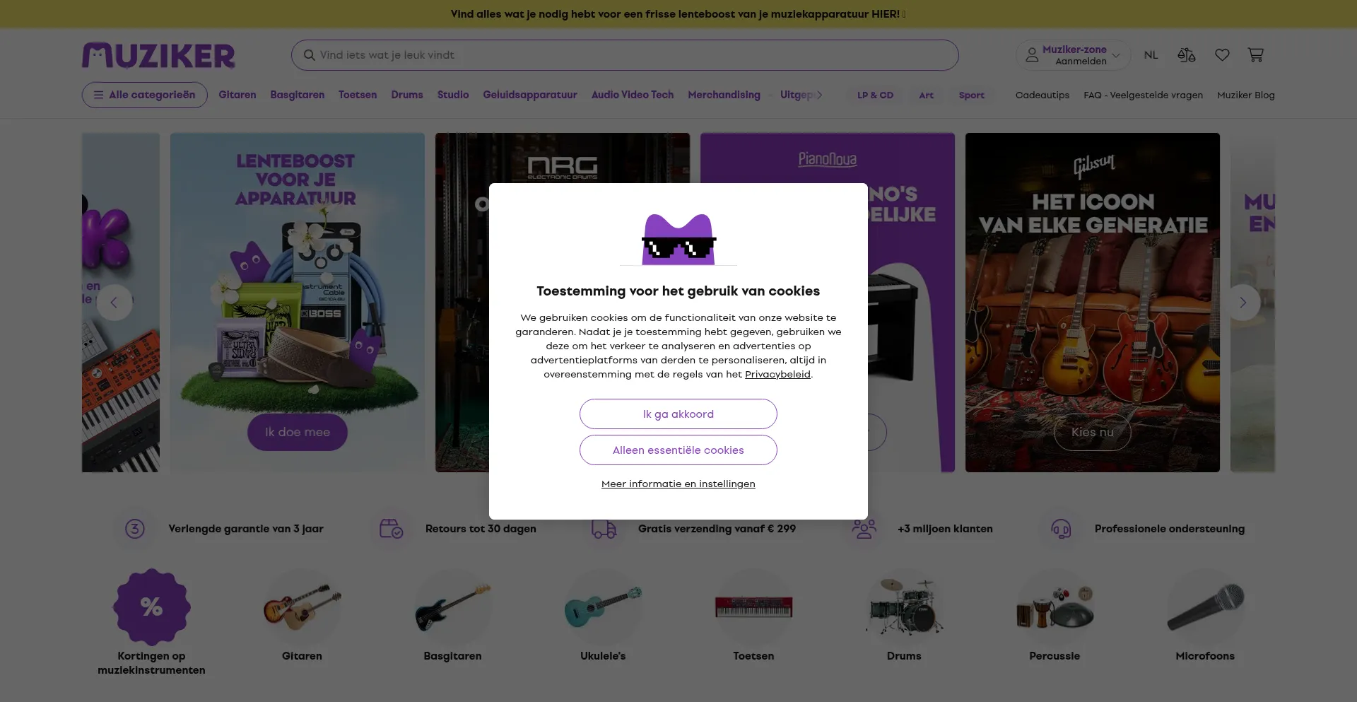 Analysis indicates that muziker.nl operates as an e-commerce platform facilitating online transactions for goods or services. The website implements shopping cart functionality, payment processing systems, and product catalog features typical of commercial retail operations.