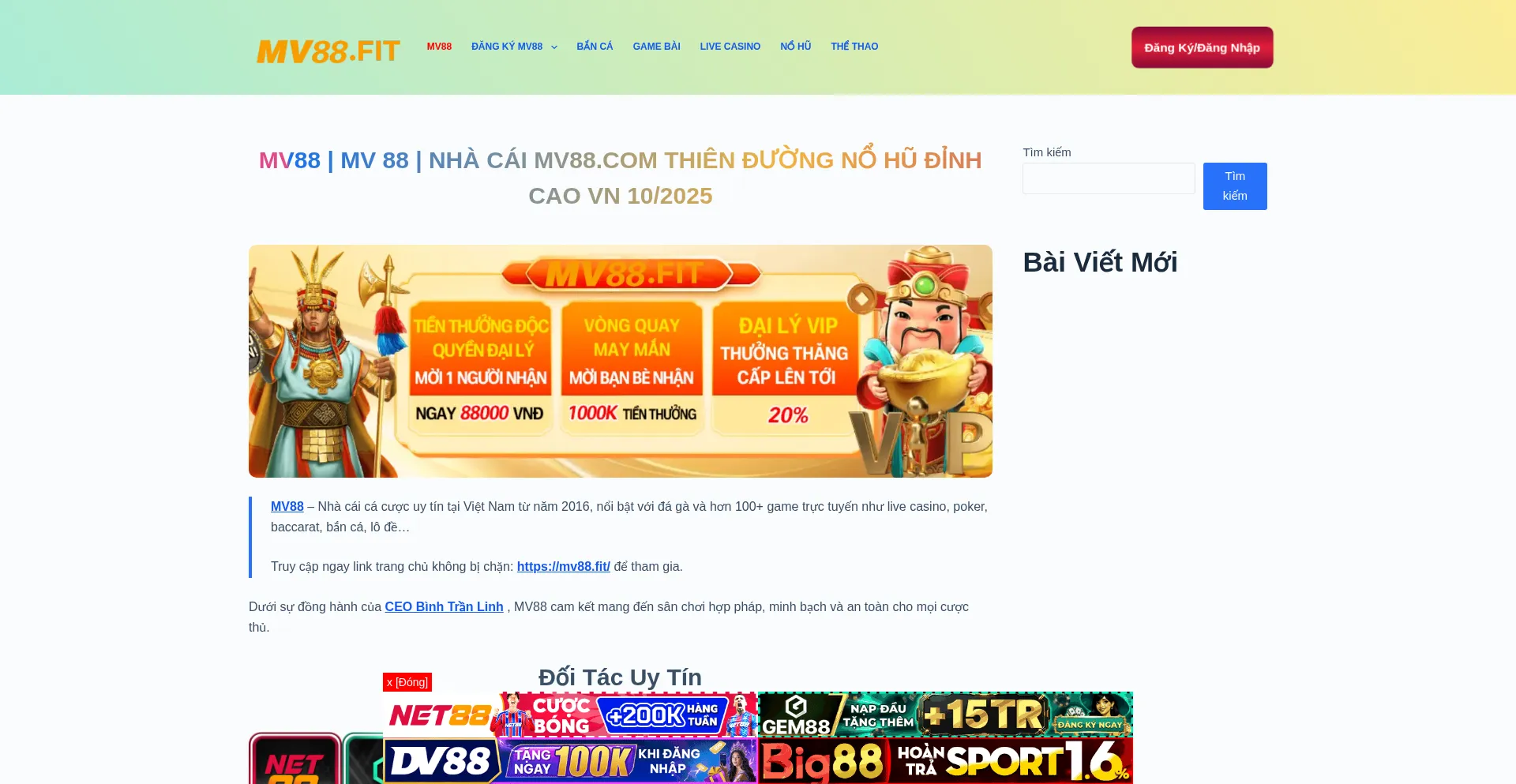 MV88 – Nhà cái cá cược uy tín tại Việt Nam từ năm 2016, nổi bật với đá gà và hơn 100+ game trực tuyến như live casino, poker, baccarat, bắn cá...