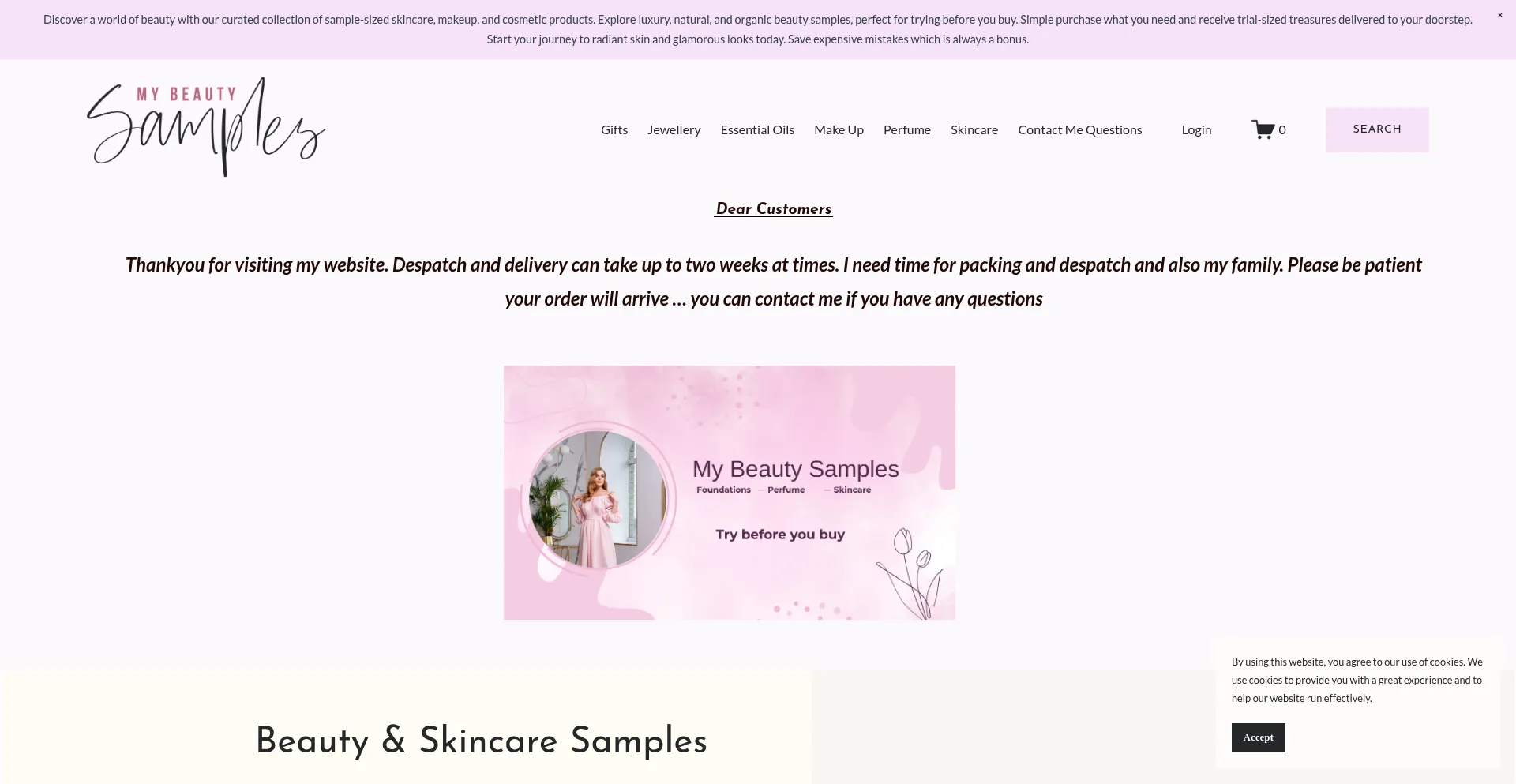 Analysis indicates that mybeautysamples.com operates as an e-commerce platform facilitating online transactions for goods or services. The website implements shopping cart functionality, payment processing systems, and product catalog features typical of commercial retail operations.