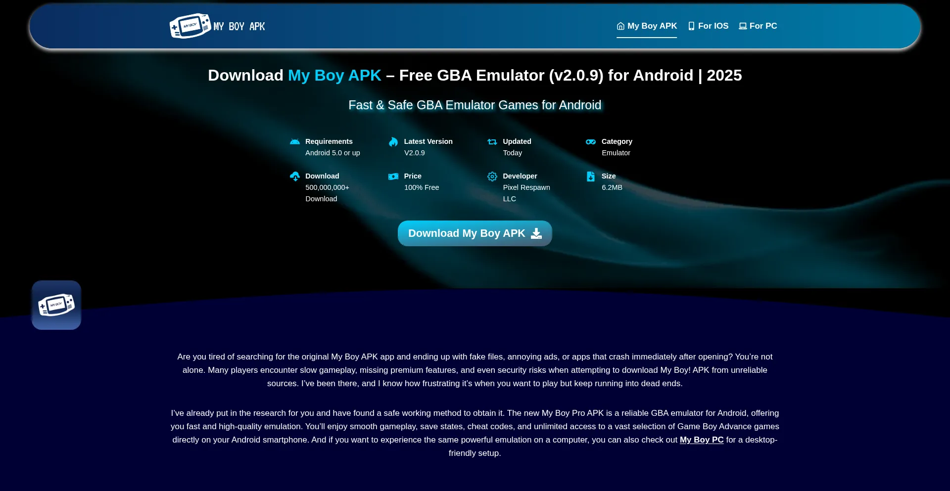 To enjoy playing all the GBA games, be quick to download My Boy APK emulator. It has fast speed and premium features to give you the best experience.