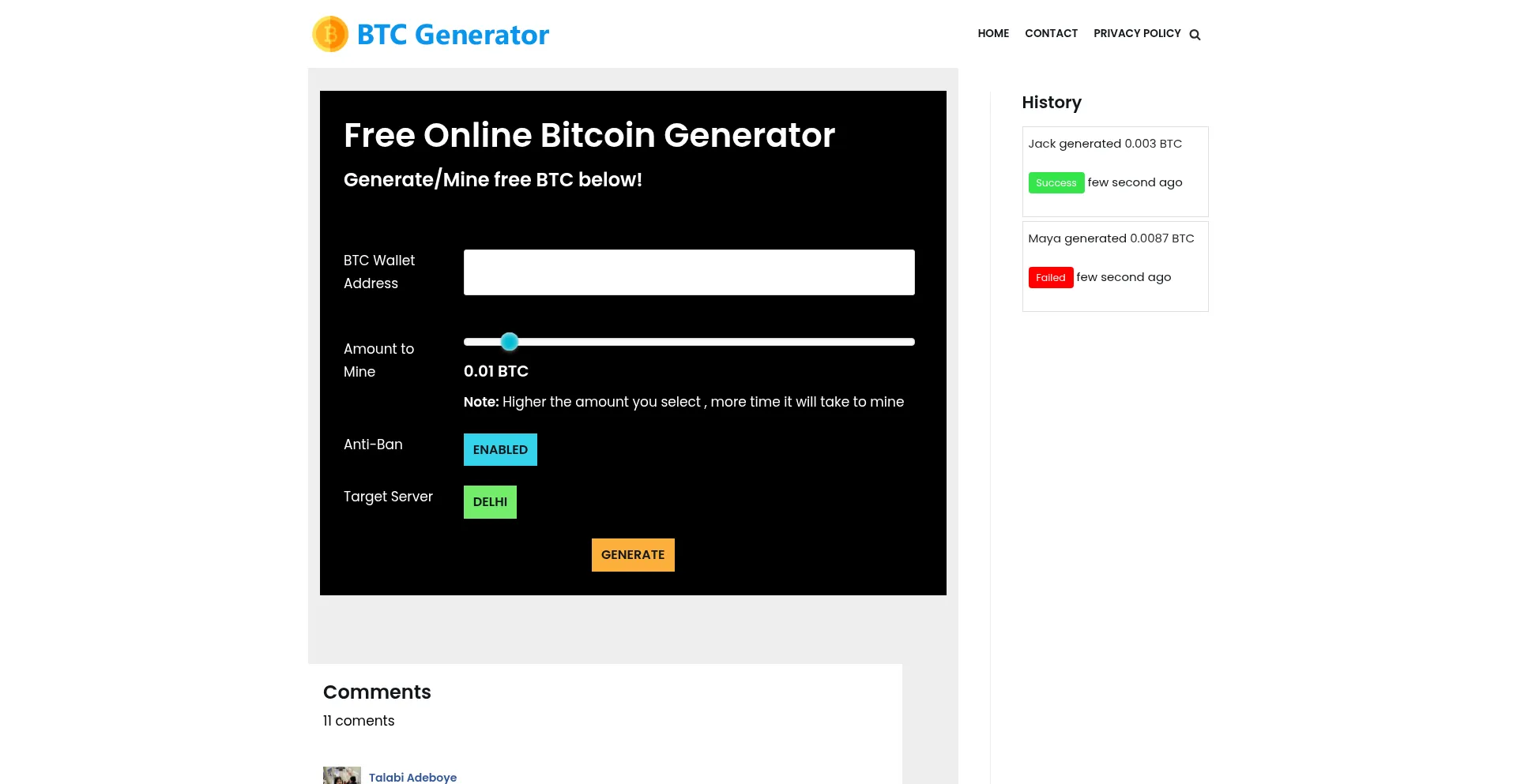 Have you had a personal experience with Mybtcgenerator.com?