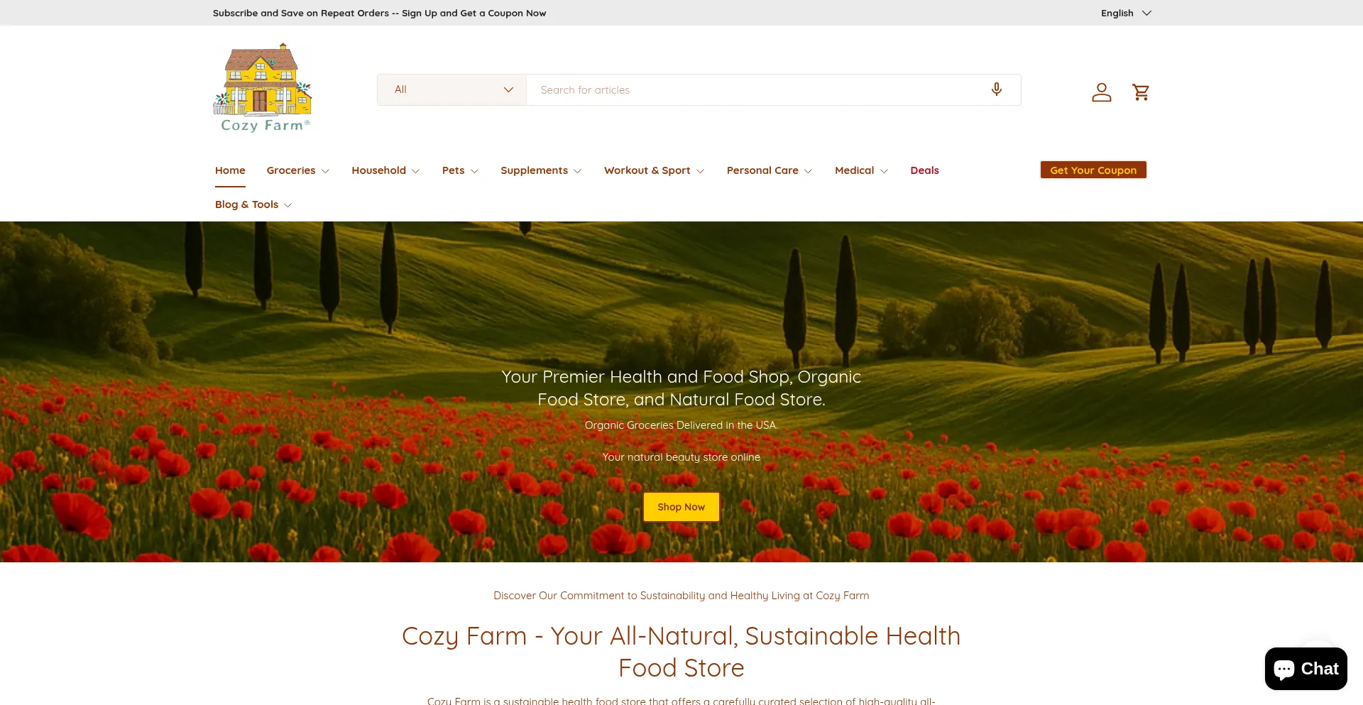 Shop at Cozy Farm for all natural beauty products, vitamins and supplements, gluten-free food, and keto snacks. We are the online store for the best organic food and grocery ite...