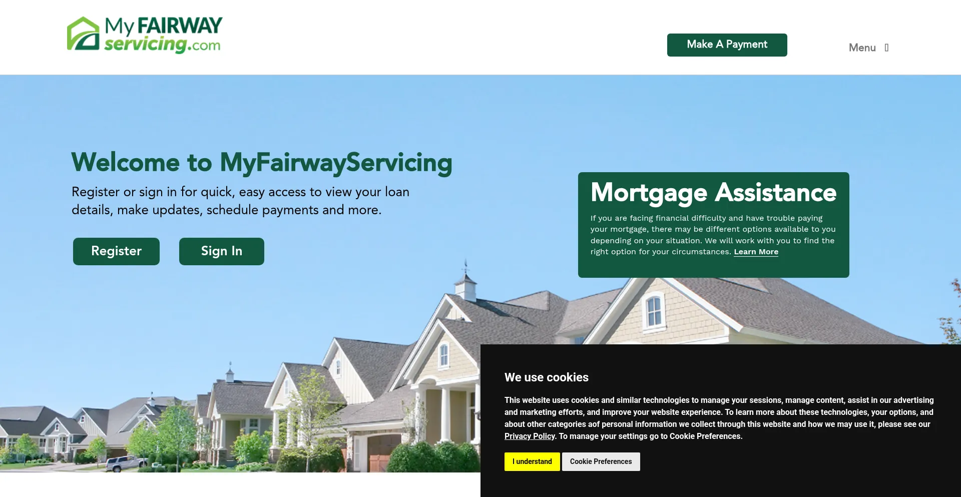 The website implements cookie consent mechanisms in compliance with privacy regulations such as GDPR or CCPA. This demonstrates that myfairwayservicing.com adheres to data protection standards and provides users with control over personal data collection practices.