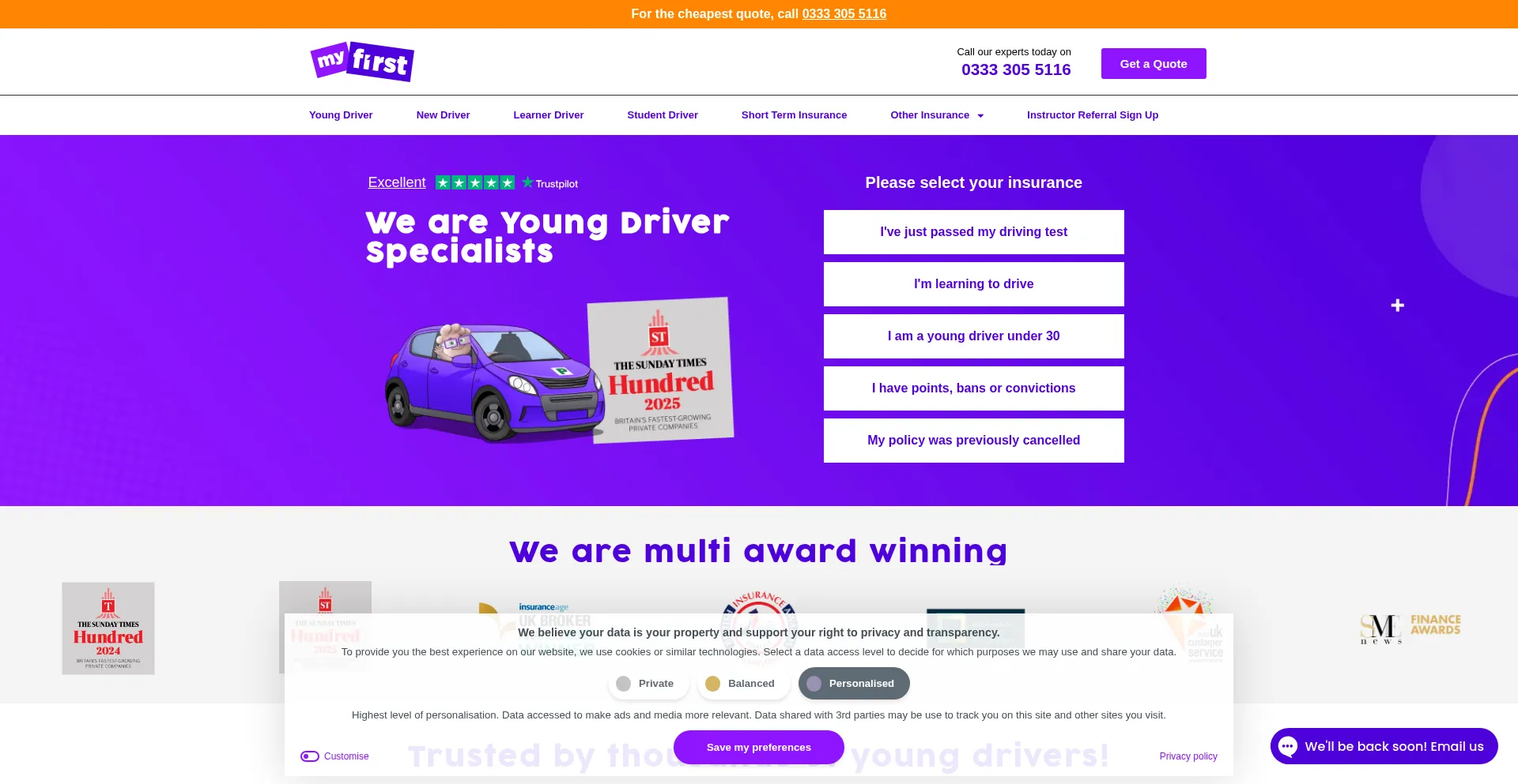 MyFirst are providers of Car Insurance for Young or First Time Drivers. We aim to provide the Cheapest Car Insurance For New Drivers.