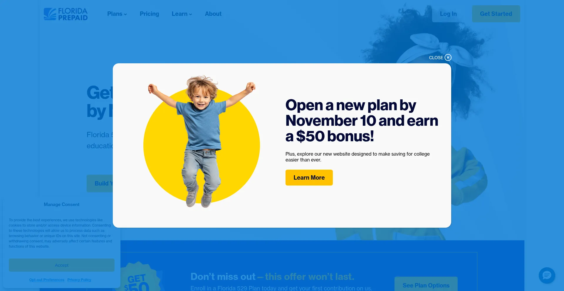 The website implements cookie consent mechanisms in compliance with privacy regulations such as GDPR or CCPA. This demonstrates that myfloridaprepaid.com adheres to data protection standards and provides users with control over personal data collection practices.