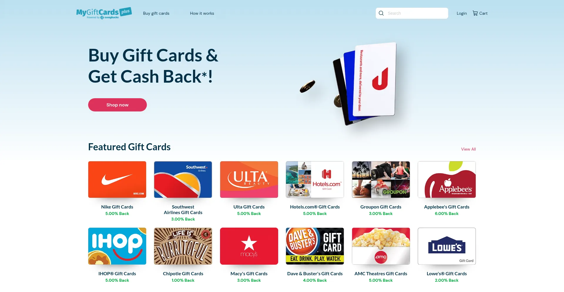 Get cash back on gift cards to over 150 retailers and restaurants. Save money when you buy gift cards for friends, family members or yourself. Top-rated by thousands of happy cu...