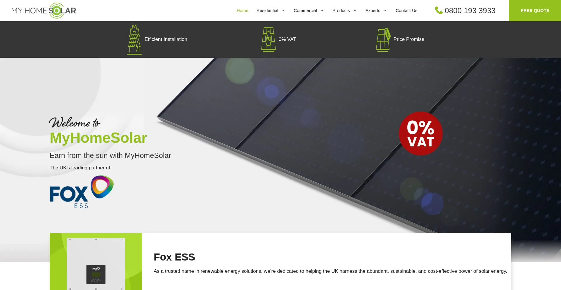 Welcome to MyHomeSolarEarn from the sun with MyHomeSolar The UK's leading partner of Fox ESSAs a trusted name in renewable energy solutions, we're