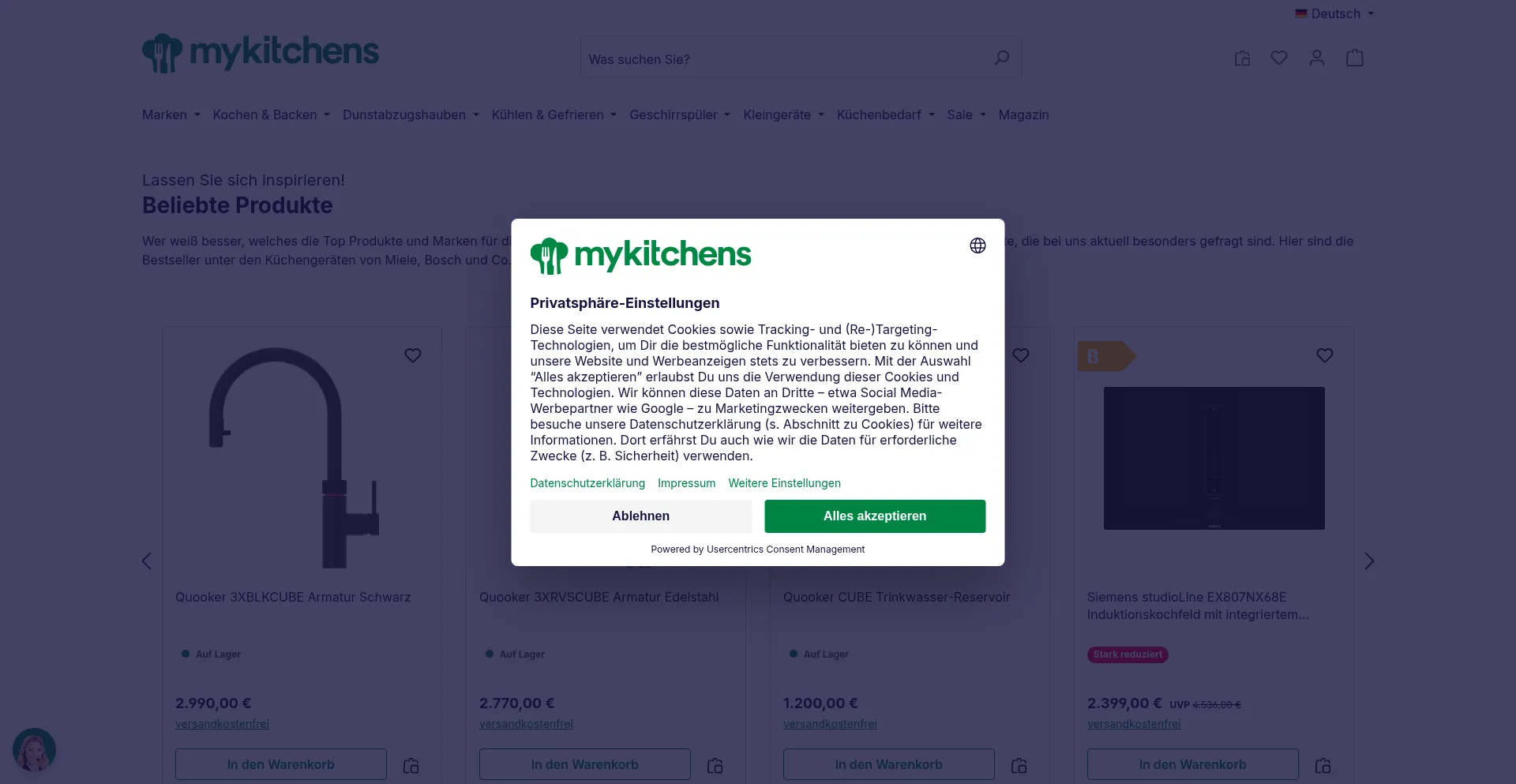 www.paypal.com www.youtube.com www.google.com www.xing.com app.usercentrics.eu v1.api.service.cmp.usercentrics.eu logo.haendlerbund.de www.googletagmanager.com www.mykitchens.de img.idealo.com +16 more