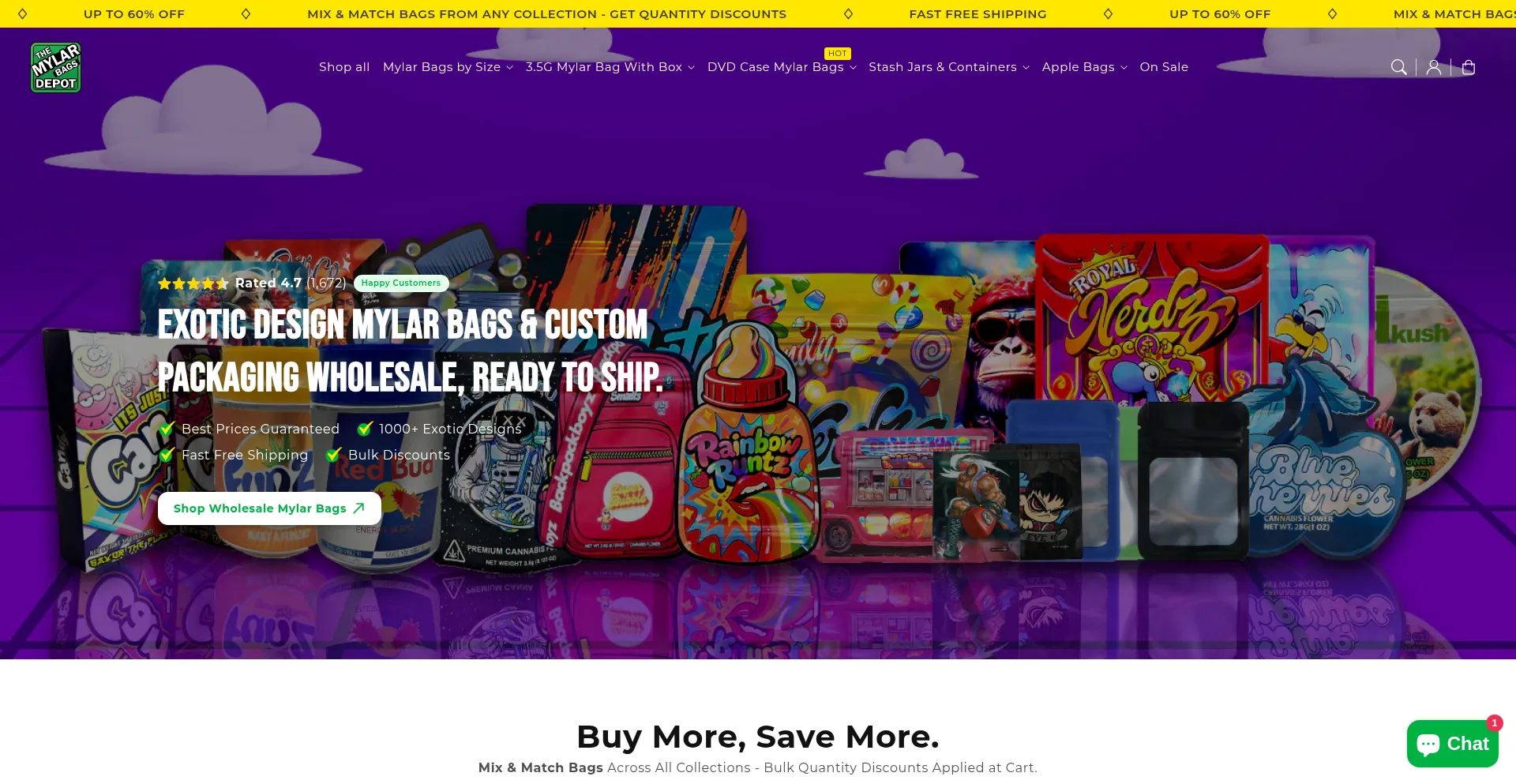 Buy all size and types of exotic wholesale mylar bags in bulk, 3.5 Mylar bags, mylar vacuum seal bags, mini mylar bags, large mylar bags, 1 ounce mylar bags, 1 pound mylar bags,...