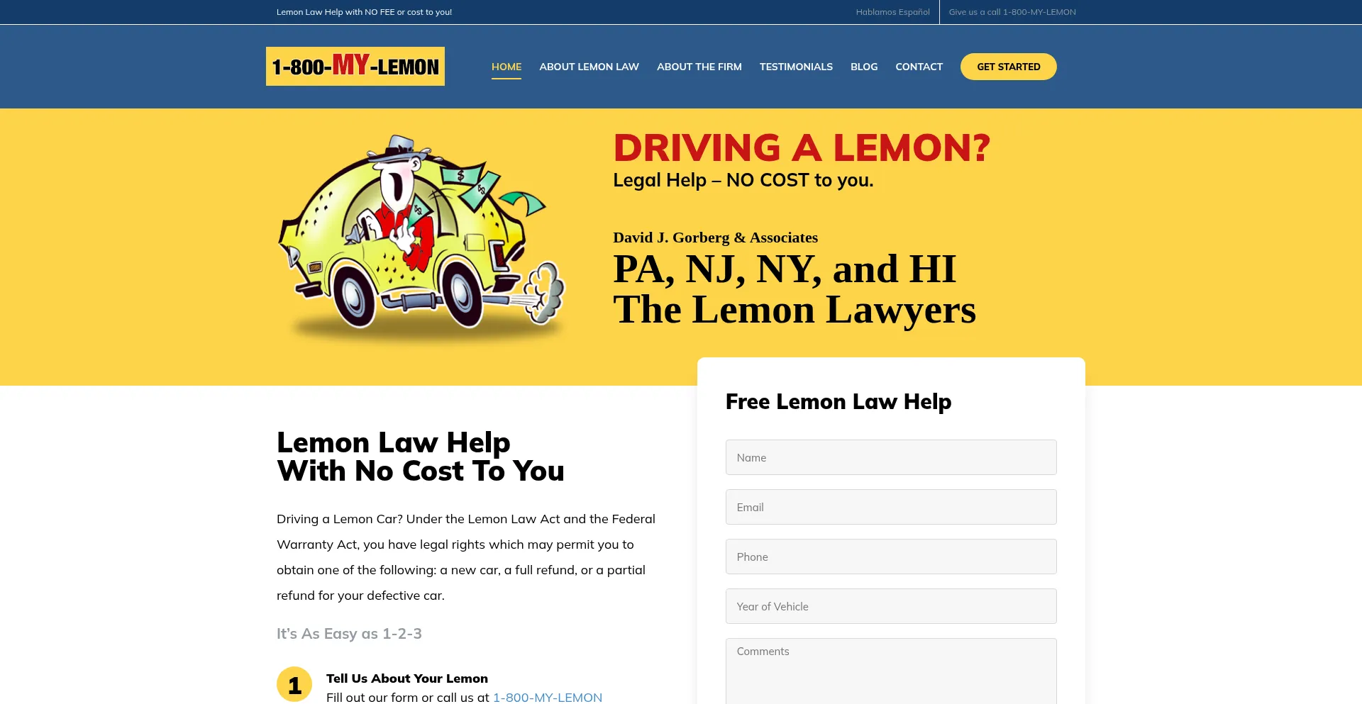 Driving a Lemon? Contact Lemon Law Lawyer David J. Gorberg & Associates for free Lemon Law help in PA, NJ, NY and HI.