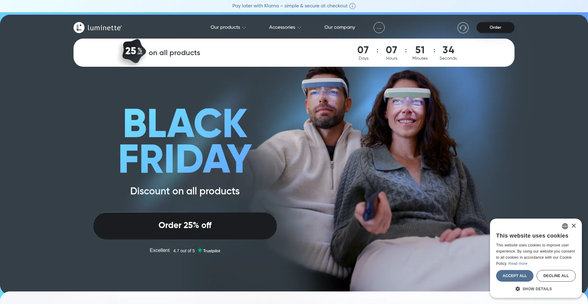 myluminette.com has a good Trustpilot score (4.7) based on 1182 reviews, indicating a high level of trust from customers. It is a good sign of legitimacy!