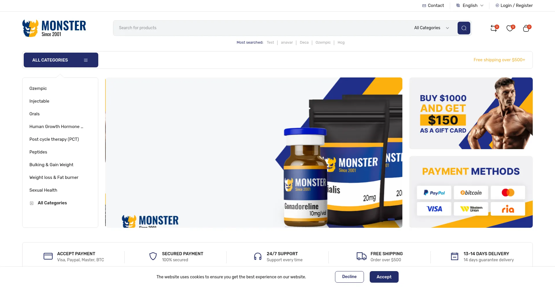 The website leverages popular product names and brands to attract traffic and generate user interest. These products may be offered through promotional campaigns or discount strategies designed to increase visitor engagement and conversion rates for mymonsterlabs.com.