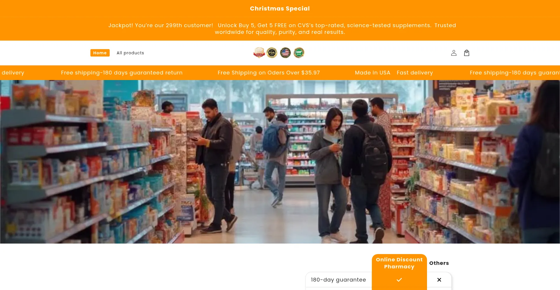 Shopping, Reliable Payment Method, Uses Free eCommerce Engine, Drugstore, Quick Payment, Shopify Platform, Facebook Integration, AI-generated Text, Young Domain