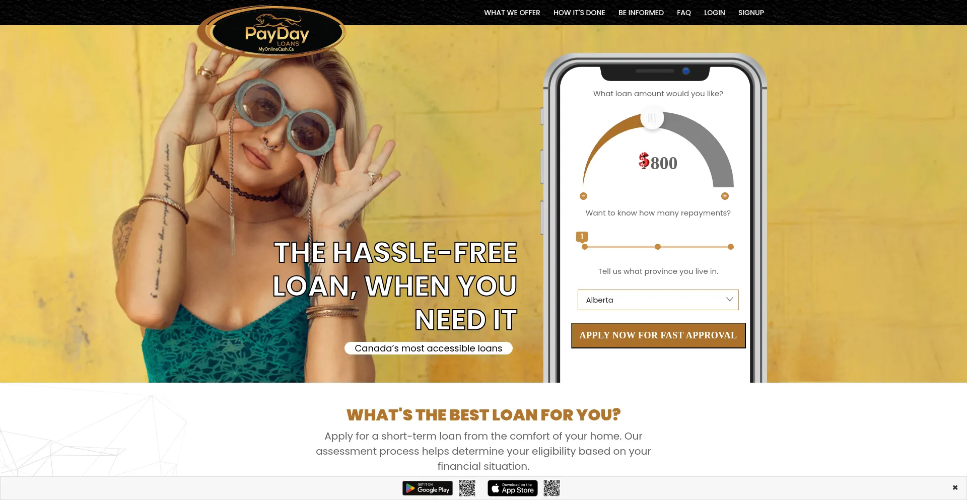 The myonlinecash.ca website offers a mobile application for Android devices, indicating expanded platform presence beyond web-based services.