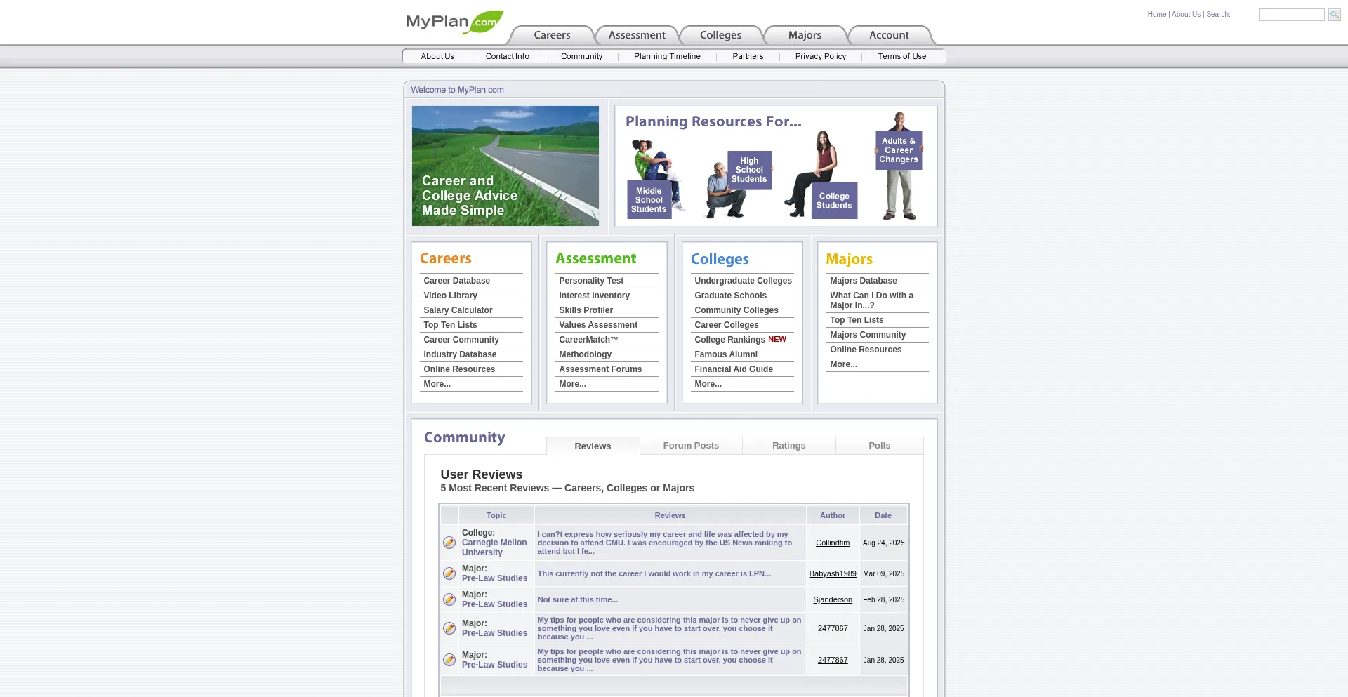 MyPlan.com is unquestionably the best resource on the Internet for career and college information. Their long list of free services includes career profiles, career videos, sal...