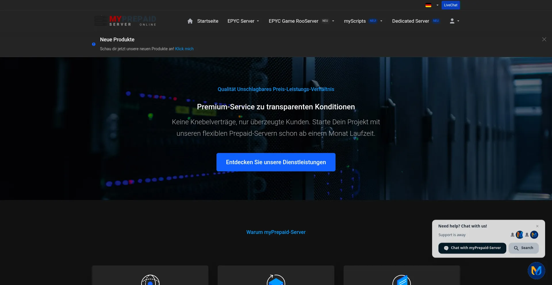 Leistungsstarkes Hosting Server Flexibel & Sicher | 24/7 Support - myPrepaid-Server