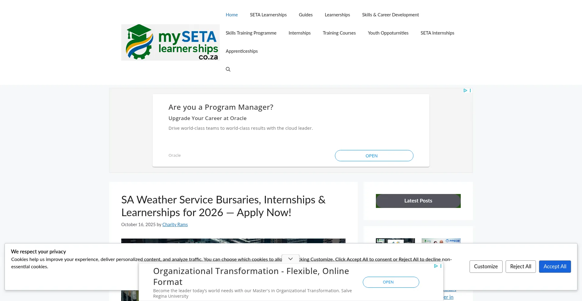 The website implements cookie consent mechanisms in compliance with privacy regulations such as GDPR or CCPA. This demonstrates that mysetalearnerships.co.za adheres to data protection standards and provides users with control over personal data collection practices.