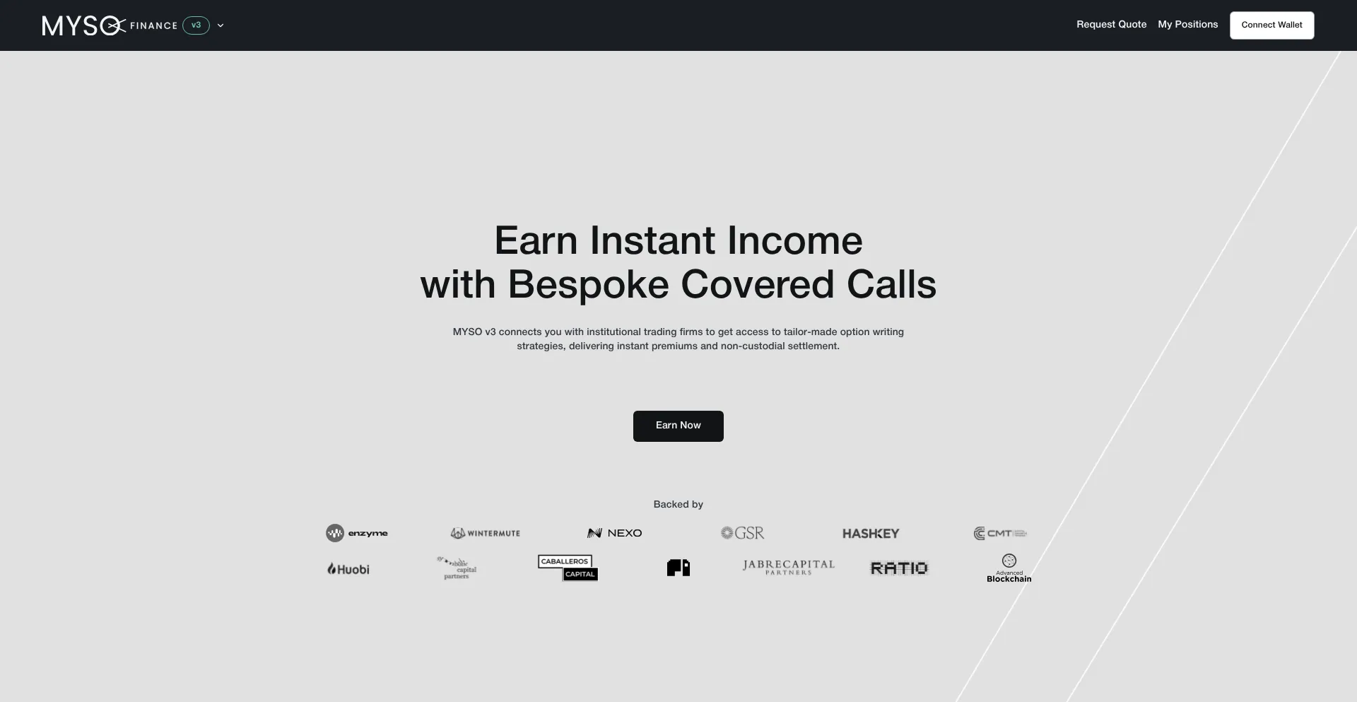 MYSO is a DeFi protocol for bespoke on-chain covered call strategies, focusing on HNWIs and treasuries