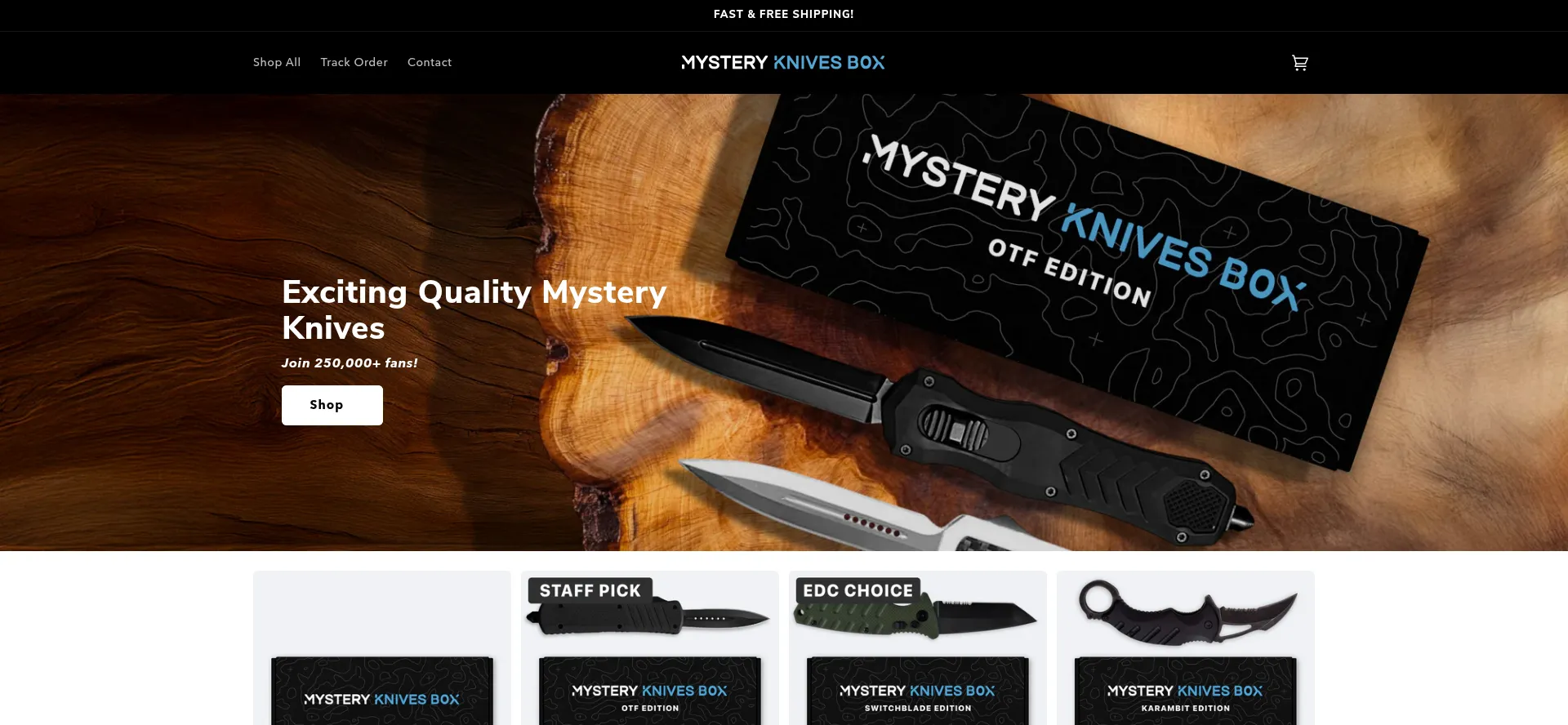 Our analyzer determines that website mysteryknivesbox.com is using Shopify CMS. Shopify is a popular e-commerce platform, powering around 4.4% of websites globally.