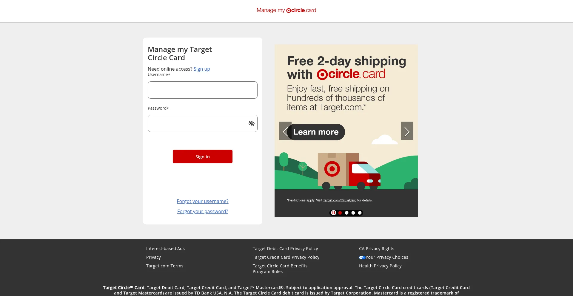 Analysis indicates that mytargetcirclecard.target.com operates as an e-commerce platform facilitating online transactions for goods or services. The website implements shopping cart functionality, payment processing systems, and product catalog features typical of commercial retail operations.