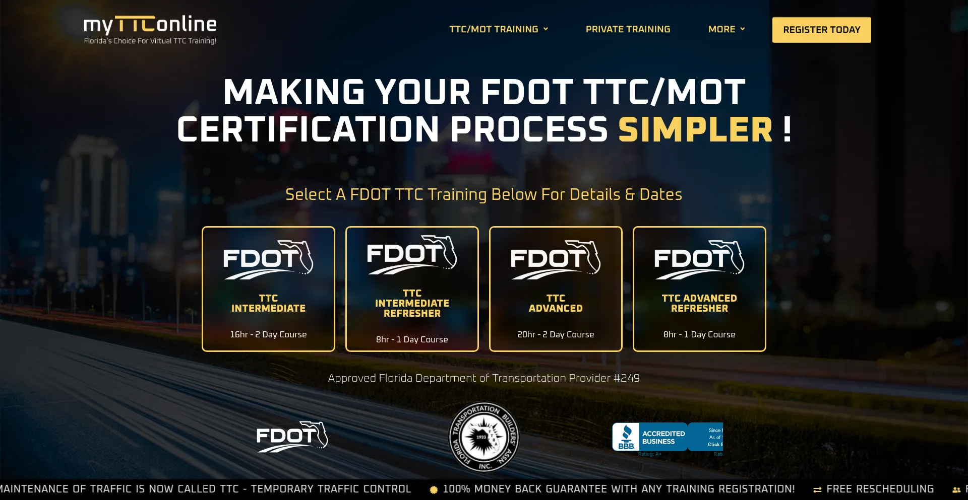 FDOT TTC Certification Intermediate, Advanced and Refresher