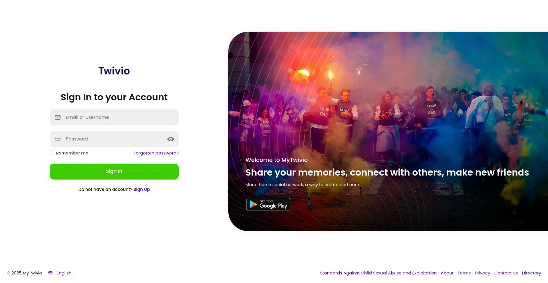 The mytwivio.com website offers a mobile application for Android devices, indicating expanded platform presence beyond web-based services.