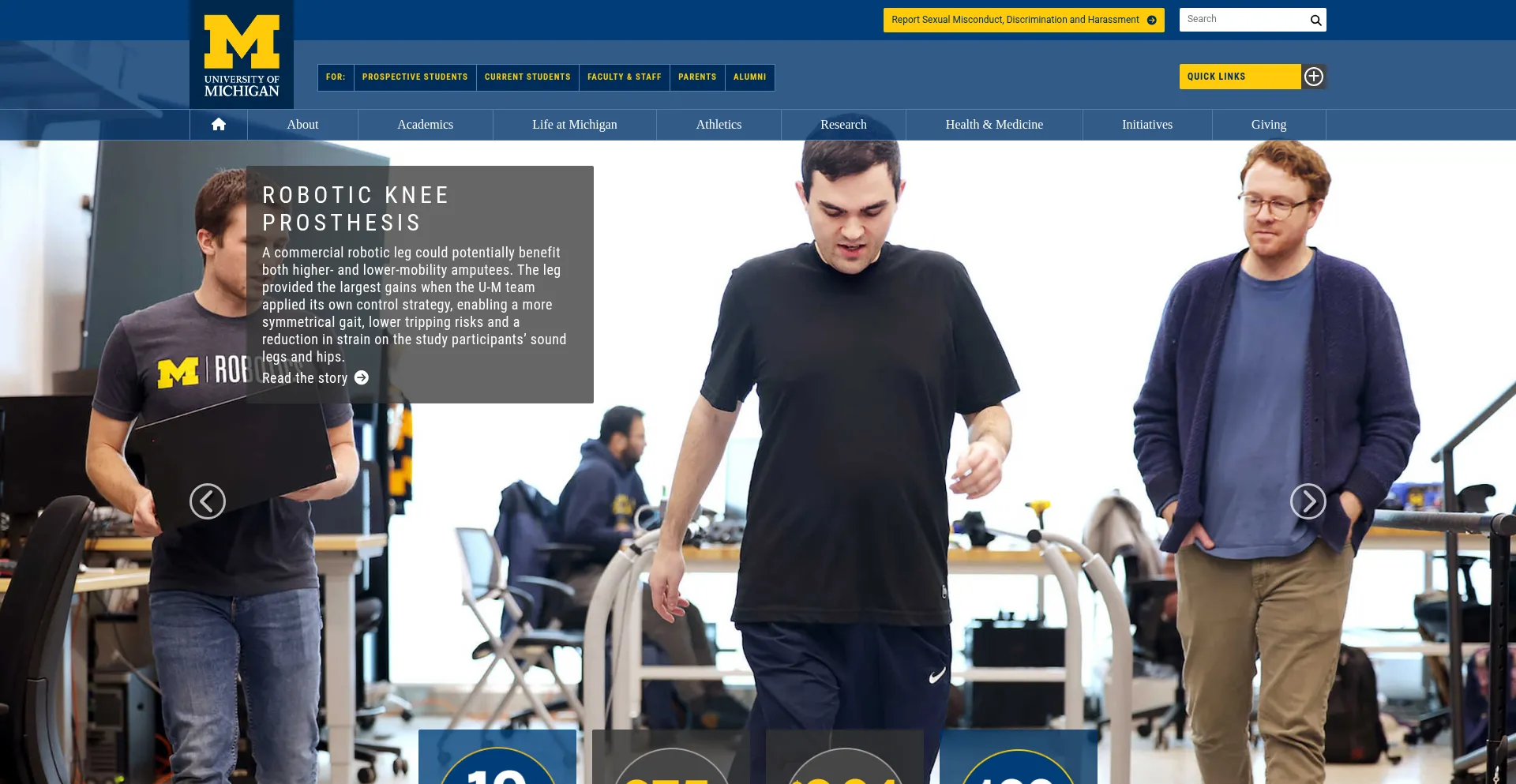 A top-ranked public university, the University of Michigan has a tradition of excellence in research, learning and teaching, sports and the arts, and more.