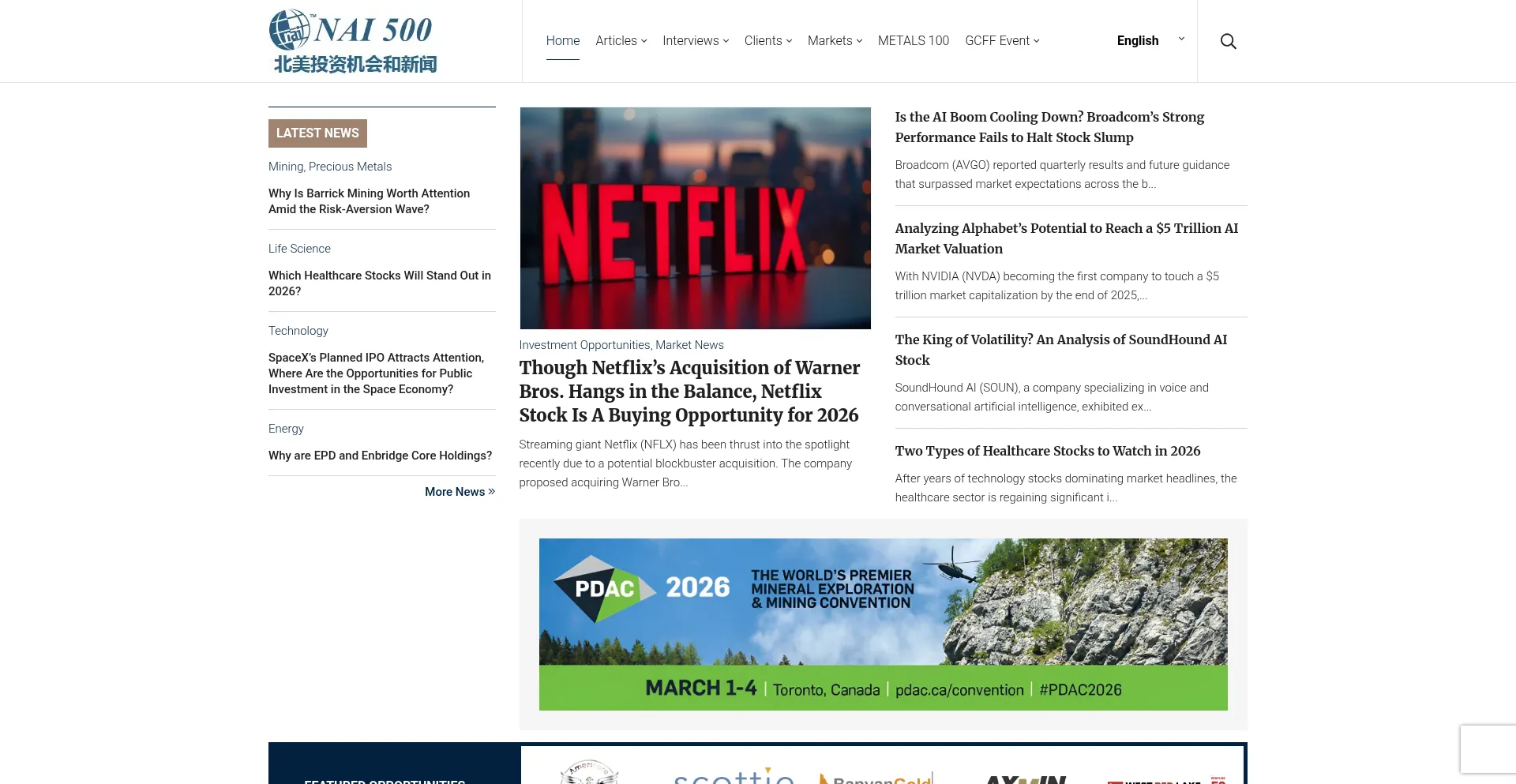 NAI500 covers North American markets in English, Simplified Chinese and Traditional Chinese—mining, tech, small caps, CEO interviews, IPOs and GCFF updates.