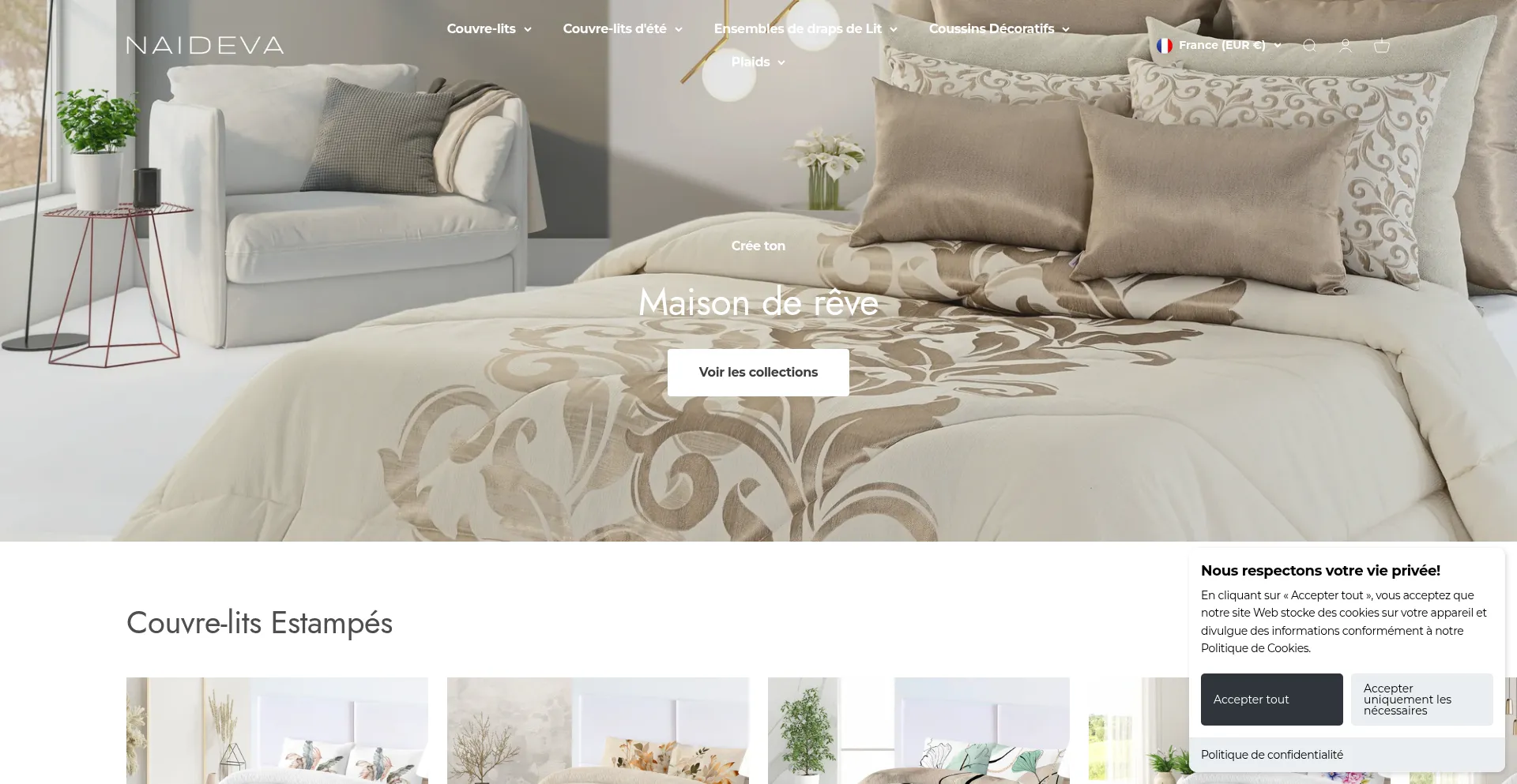 Our analyzer determines that website naidevahome.com is using Shopify CMS. Shopify is a popular e-commerce platform, powering around 4.4% of websites globally.
