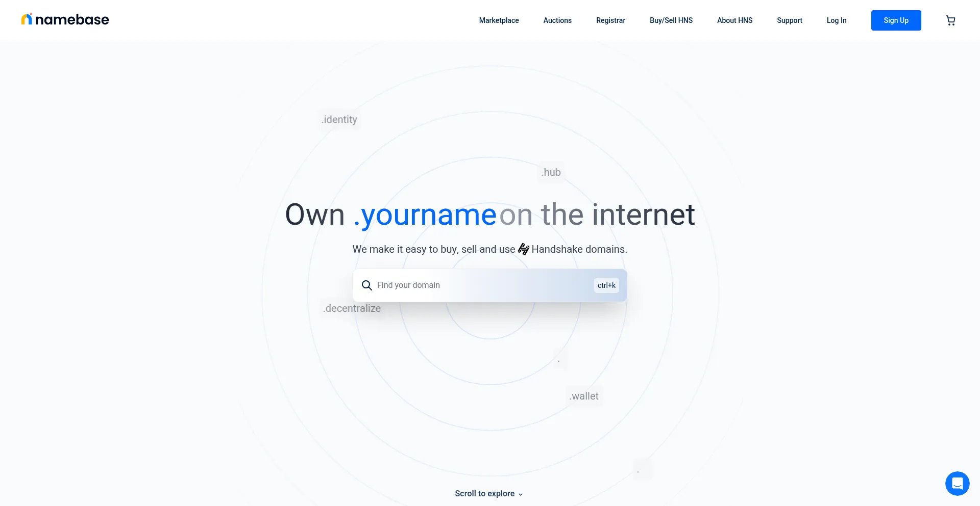 Namebase is a secure and easy platform to interact with Handshake. Buy, sell, and manage top-level domains and HNS coins. Get started in minutes for free.
