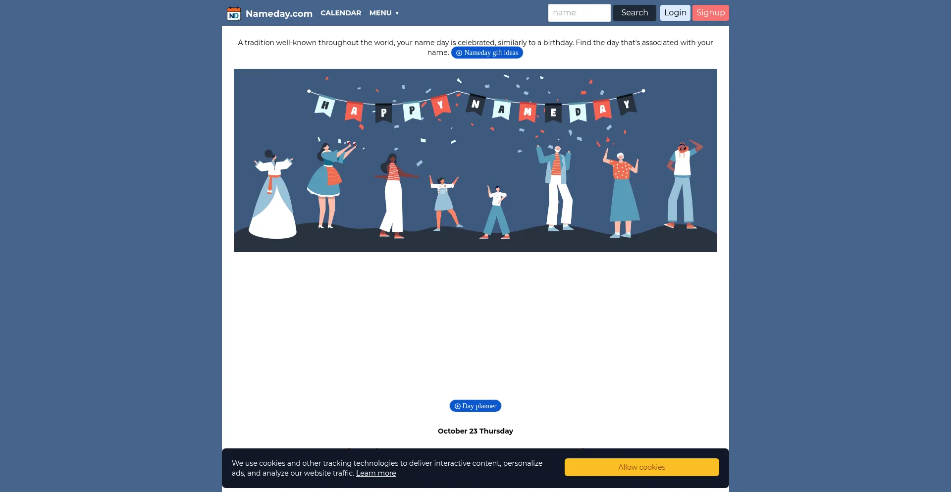 The website implements cookie consent mechanisms in compliance with privacy regulations such as GDPR or CCPA. This demonstrates that nameday.com adheres to data protection standards and provides users with control over personal data collection practices.