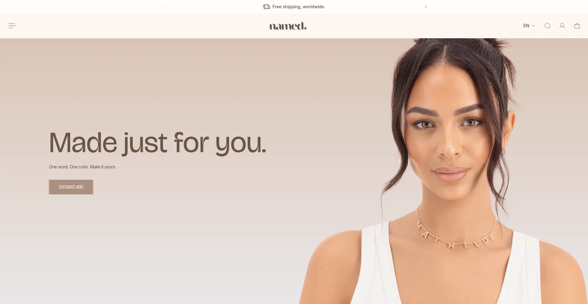 Discover Named Jewellery: customizable name necklaces in real 18k gold or silver, perfect for elevating your style or gifting a unique present. Fast delivery and exceptional qua...