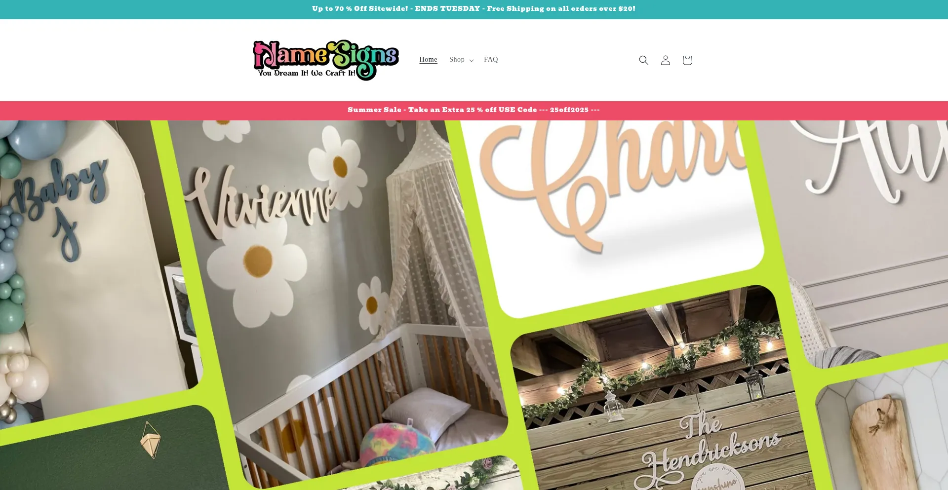 Analysis indicates that namesigns.com operates as an e-commerce platform facilitating online transactions for goods or services. The website implements shopping cart functionality, payment processing systems, and product catalog features typical of commercial retail operations.