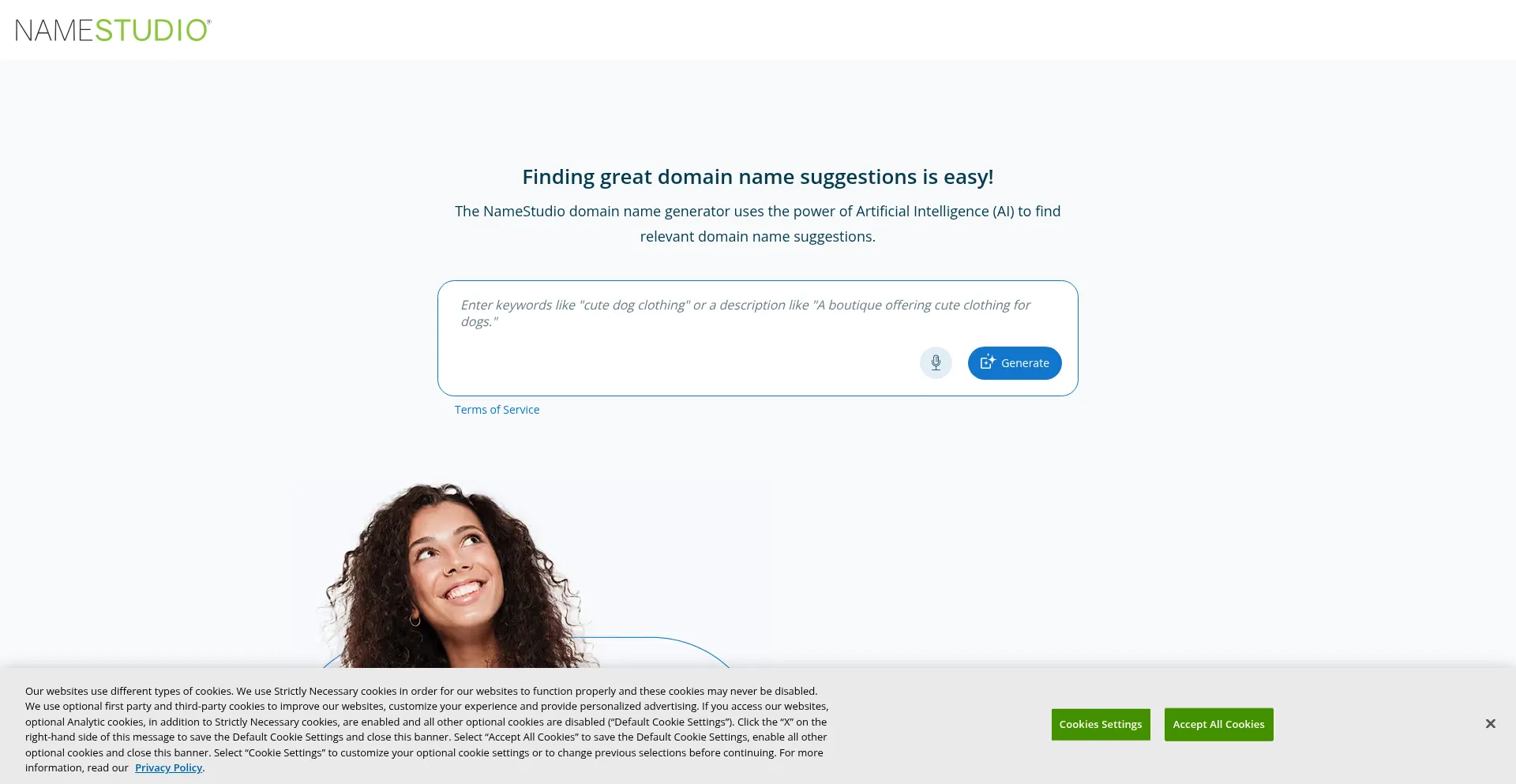 NameStudio uses the power of AI to generate relevant domain name suggestions. Enter keywords or prompts to start, and our domain name generator will do the rest.