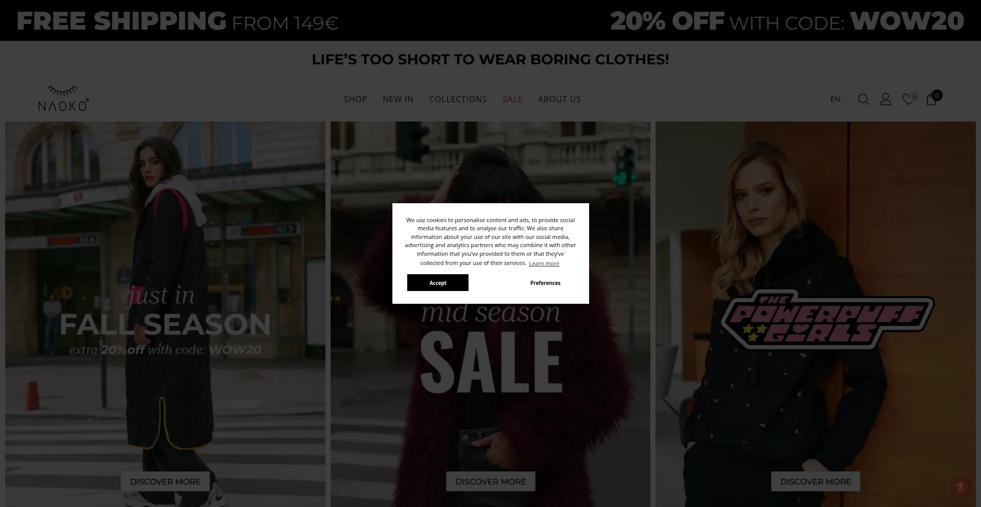 The website implements cookie consent mechanisms in compliance with privacy regulations such as GDPR or CCPA. This demonstrates that naoko-store.com adheres to data protection standards and provides users with control over personal data collection practices.