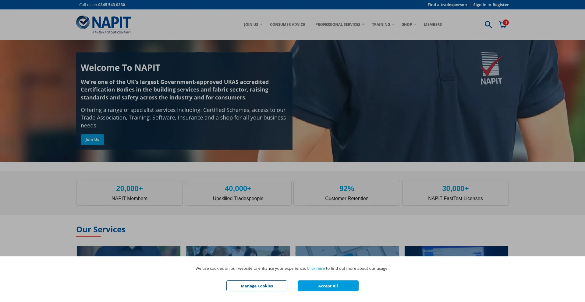 The website implements cookie consent mechanisms in compliance with privacy regulations such as GDPR or CCPA. This demonstrates that napit.org.uk adheres to data protection standards and provides users with control over personal data collection practices.