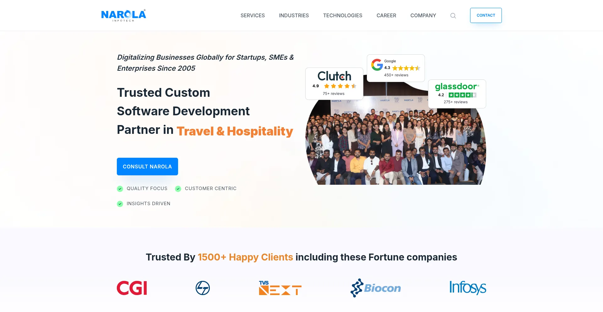 narolainfotech.com uses Bootstrap, a widely-adopted open-source framework for responsive web development. Bootstrap enables efficient creation of mobile-friendly interfaces through standardized components and styling.