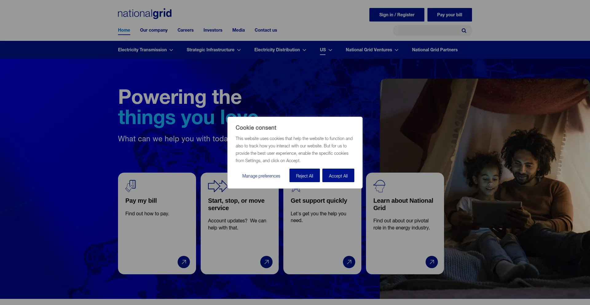The website implements cookie consent mechanisms in compliance with privacy regulations such as GDPR or CCPA. This demonstrates that nationalgrid.com adheres to data protection standards and provides users with control over personal data collection practices.
