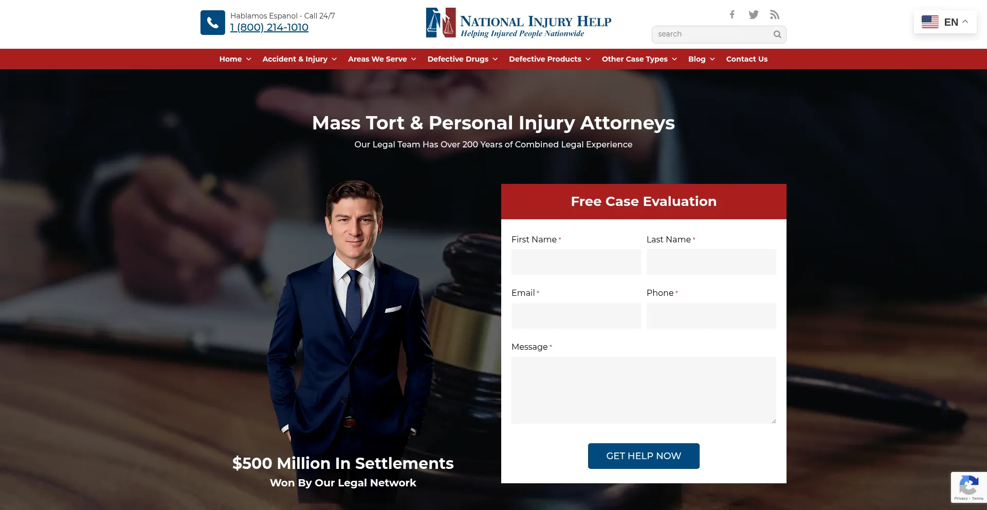 The nationalinjuryhelp.com website employs search engine optimization (SEO) techniques to improve its visibility and ranking in search engine results pages (SERPs).