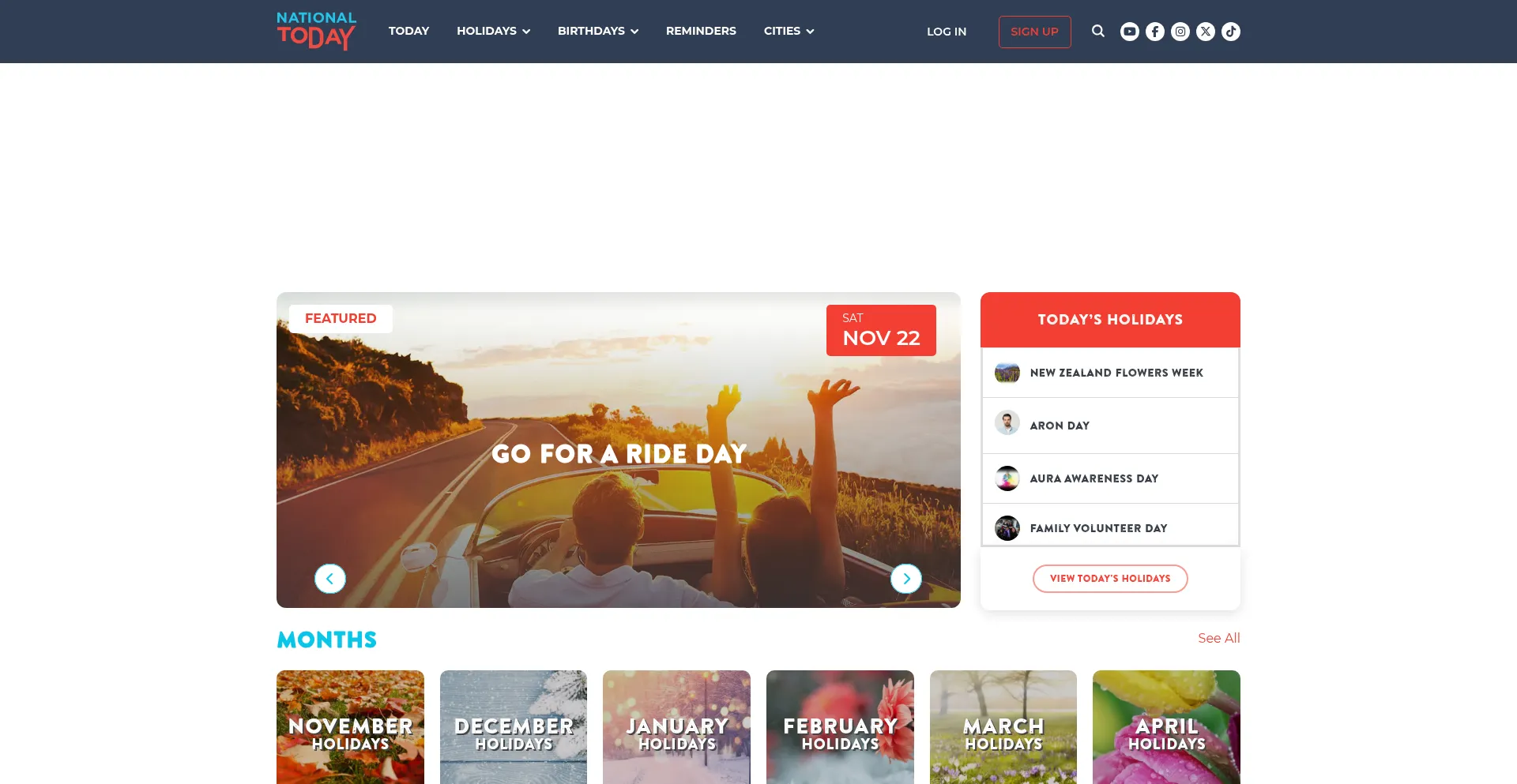 November 22, 2025 - Today is Go For A Ride Day, Love Your Freckles Day, National Sovereignty Day Argentina, National Terry Day, National Anita Day, National Le Day, National Ann...