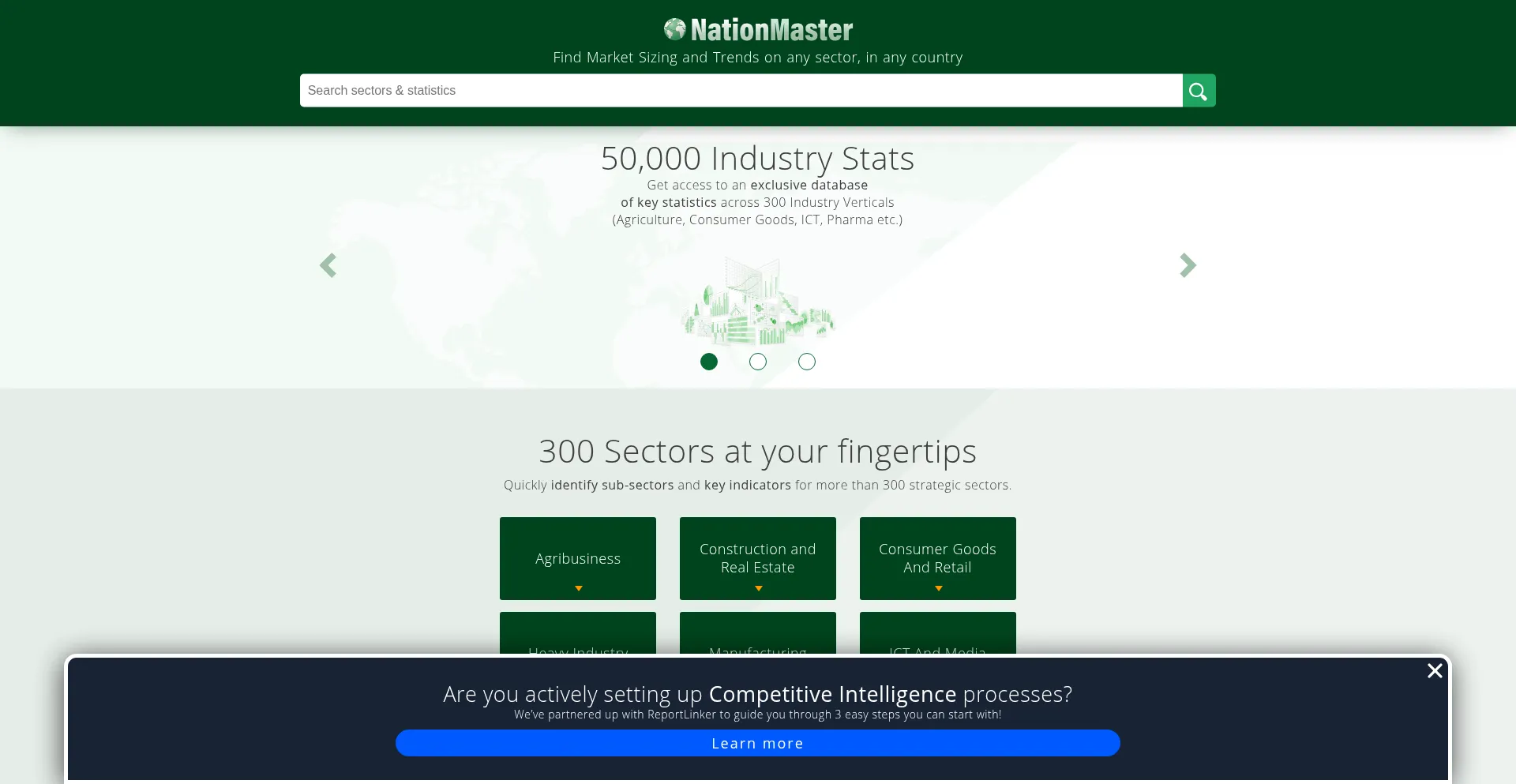 Looking for country statistics? NationMaster gives access to market sizing and trends across 300 industry verticals and a global coverage.