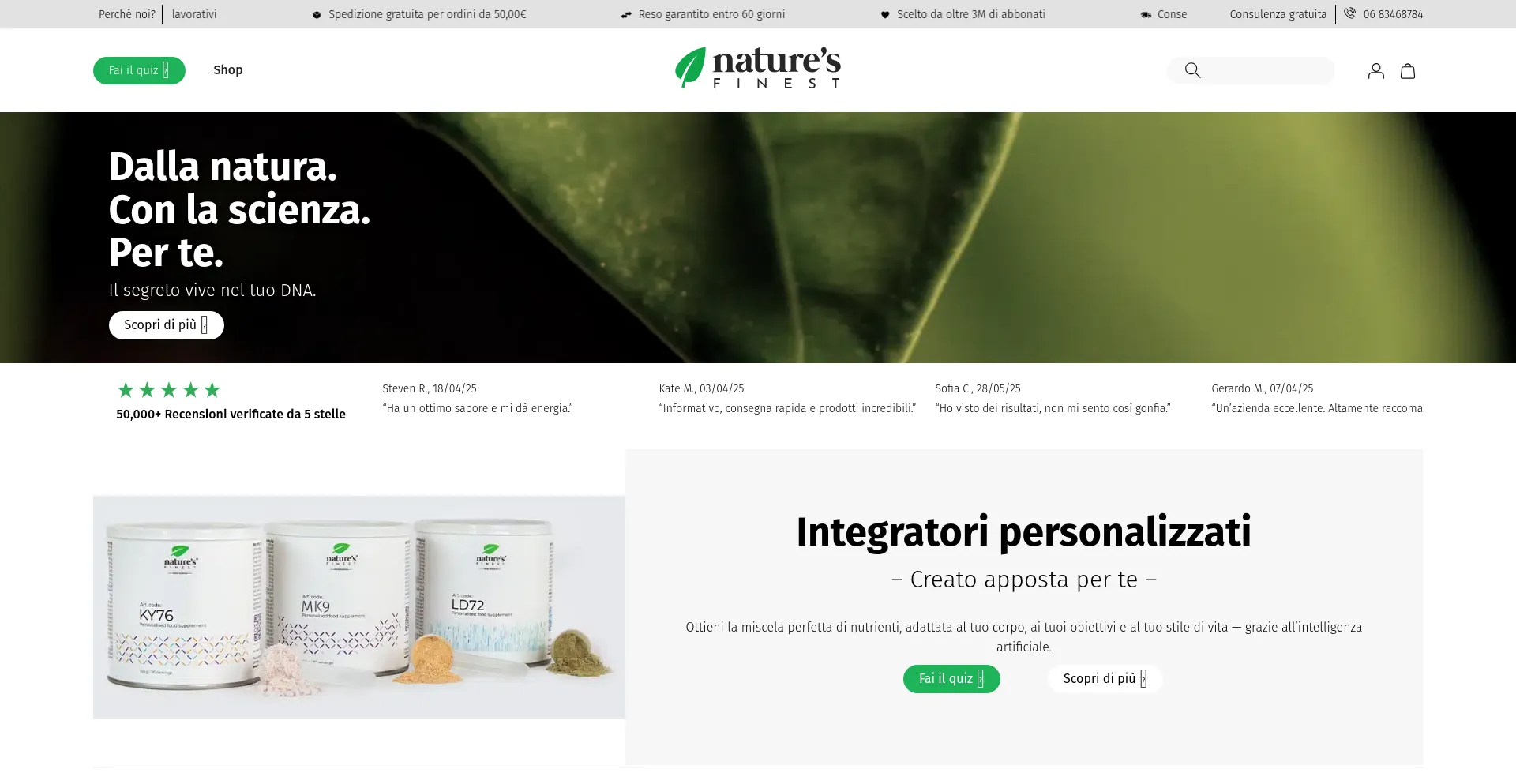 The website leverages popular product names and brands to attract traffic and generate user interest. These products may be offered through promotional campaigns or discount strategies designed to increase visitor engagement and conversion rates for naturesfinest.it.