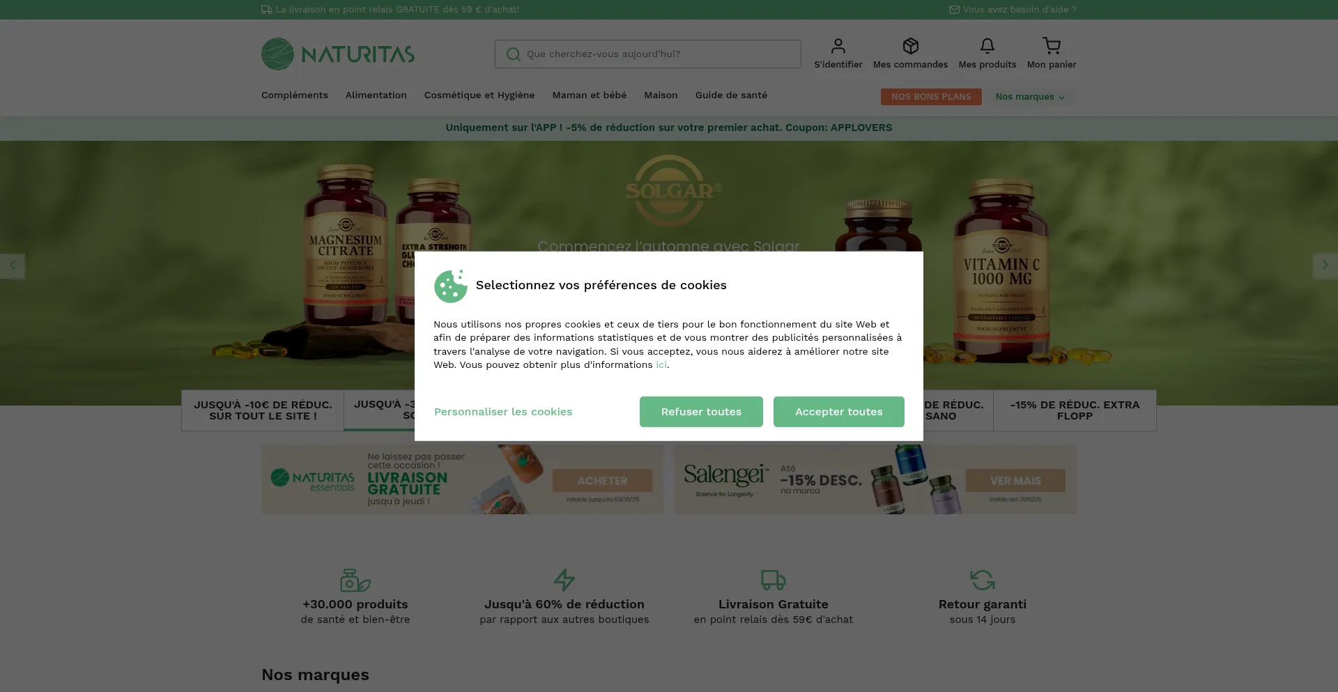The website implements cookie consent mechanisms in compliance with privacy regulations such as GDPR or CCPA. This demonstrates that naturitas.fr adheres to data protection standards and provides users with control over personal data collection practices.