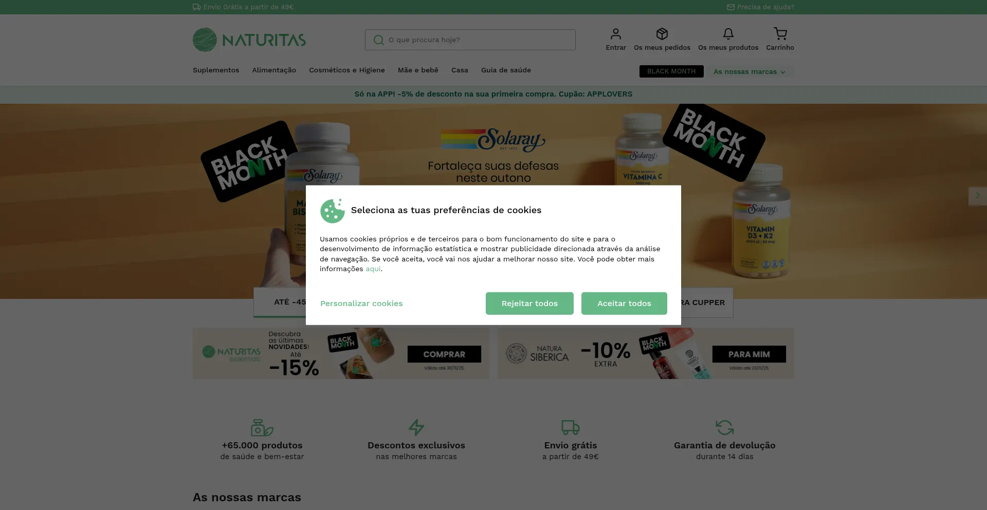 The website implements cookie consent mechanisms in compliance with privacy regulations such as GDPR or CCPA. This demonstrates that naturitas.pt adheres to data protection standards and provides users with control over personal data collection practices.